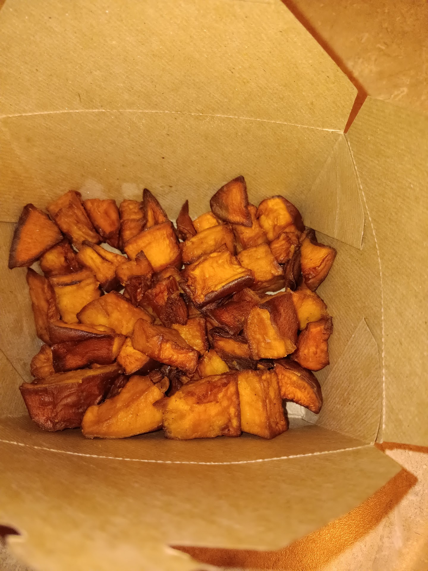 Should have done my research on this place before ordering - somehow it's rated well on delivery apps but this place is not it. I wondered how this "Korean" restaurant could serve up such a tasteless meal (not to mention half-cooked sweet potatoes, some weird gelatinous sauce called "Korean BBQ sauce," and chewy chicken) until I looked them up and got "Bobba" vibes - seems like the parent company, Salted, is a bunch of white folks claiming that traditional Korean food isn't healthy or trustworthy enough. I don't waste food, so to make this the least bit enjoyable, I had to cook the potatoes thoroughly and add my own seasonings. I'll be more careful about where I'm ordering from next time, even if...