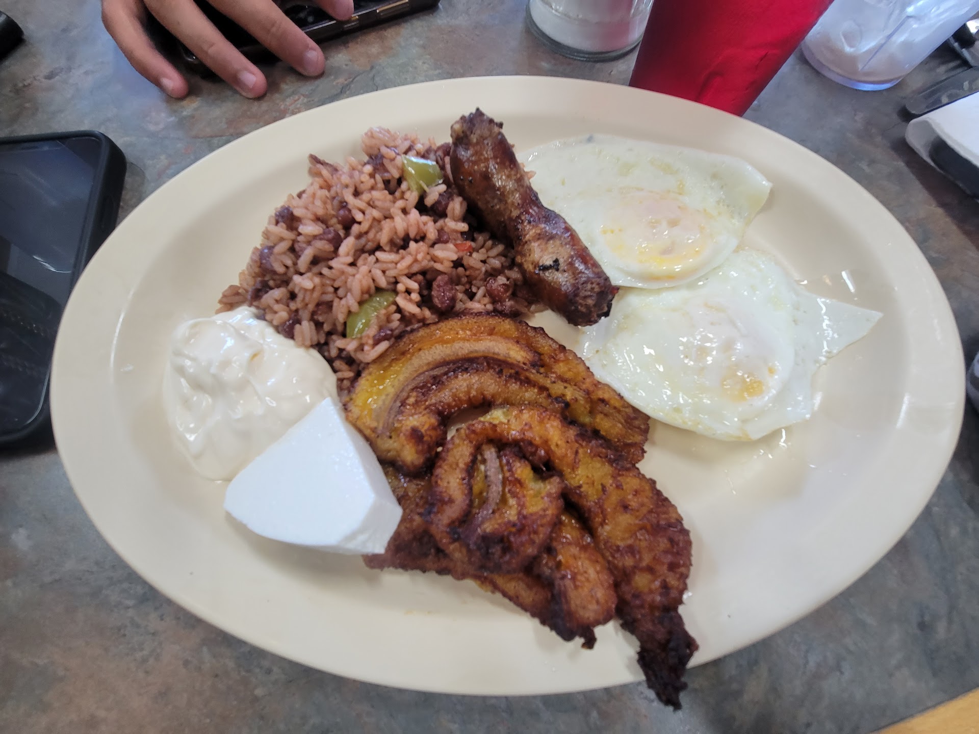 Read morePupusas do take a while but they were really cheesy with plenty of the burned chese bits. Curtido was crunchy and tasted fresh. The salsa was a bit on the spicy side and considering we don't eat spicy nor were expecting it, we doused our pupusas and curtido with it. We made due, but if not used to spicy, go easy at first! :) Platanos were just right. Could have gone without the chicken tamales. We didn't finish them. Place is pretty big. Prices are decent....