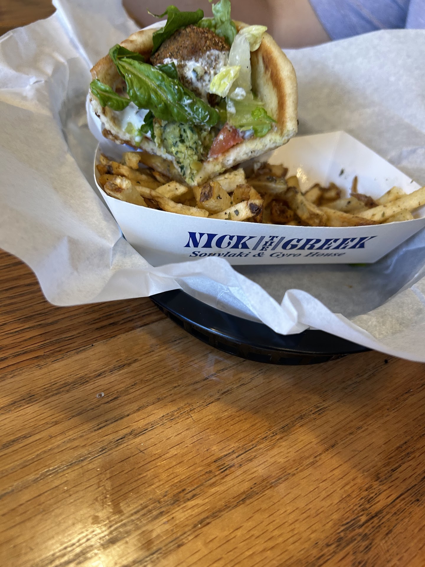 My wife and I were both excited to try a new Greek restaurant but unfortunately the quality of the food just did not live up to our expectations. We saw another review with a very similar complaint about the food quality. The meat, specifically the lamb/beef gyro is incredibly over-salted to cover up the lack of spice and the meat was dry as shoe leather. We didnât feel well after eating it. I ordered a gyros plate but it came in a plastic basket with a wet paper that was soaked completely where the salty rice leaked through the paper causing the plastic basket to expose the rice to food contamination with the plastic basket. My wife ordered the gyros sandwich that was in the same plastic basket with fries inside the pita. Everything is over salted. We were warned by Andy, the owner, that somebody pissed all over the restroom floor only after placing our order. The only reason Andy had his worker cleaning the restroom was because my wife needed to use the restroom. I might add the restaurant had zero customers except for us so it should have been spotless. We will not return to Nick the Greek. I am asking for my money back due to the bad quality of food and sick feeling we have after eating. Our first time experience is our last and I doubt anyone will return my money. I WANT A FULL REFUND! This food made...