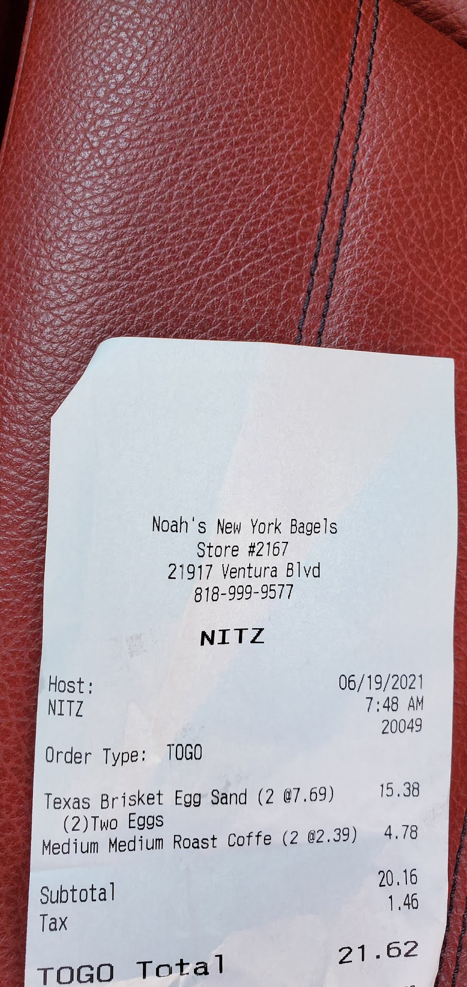 Read moreMy Pregnant wife loves Noah. She had a craving for the Texas brisket sandwich on the website. She gave me a screenshot of it and I headed over. I showed the older gentleman at the register the image with the name. Got two of them plus a different beagle and a coffee. After paying went over to the coffee section to find out that they were empty. Told the same older gentleman that they were out of coffee in return I got a loud and stern response that he would brew some. At the same time, he got all the kitchen staff's attention with his response. A nice lady from the kitchen turns and helps with making the coffee. After receiving my order headed home to enjoy my order just to find out it was the incorrect sandwiches. Didn't want to head back due to it taking fifteen minutes to drive back while having a pregnant crying upset and hangry. This is the first time I have received this type of service from here. I go here at least twice a month to get the grab-n-go...