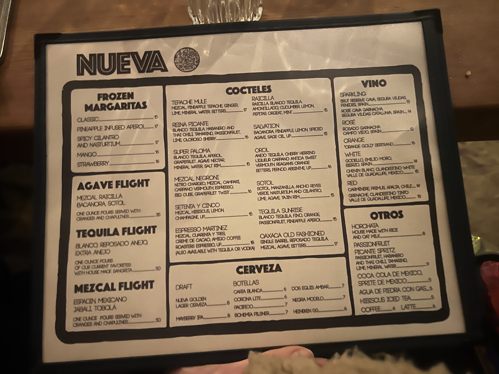 For tacos in LA, Nueva is a tad pricey but worth it for the servers & atmosphere. You can make a reservation on the Resy app and they have valet available if you can’t find street parking.