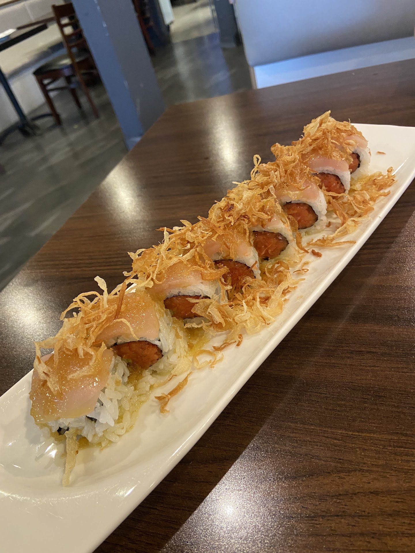 I ordered a veggie roll and Agedashi Tofu, fried tofu cubes in a light broth. I found both to be very good. The sushi chefs are artists. Their serving are large, delicious and simply elegant.