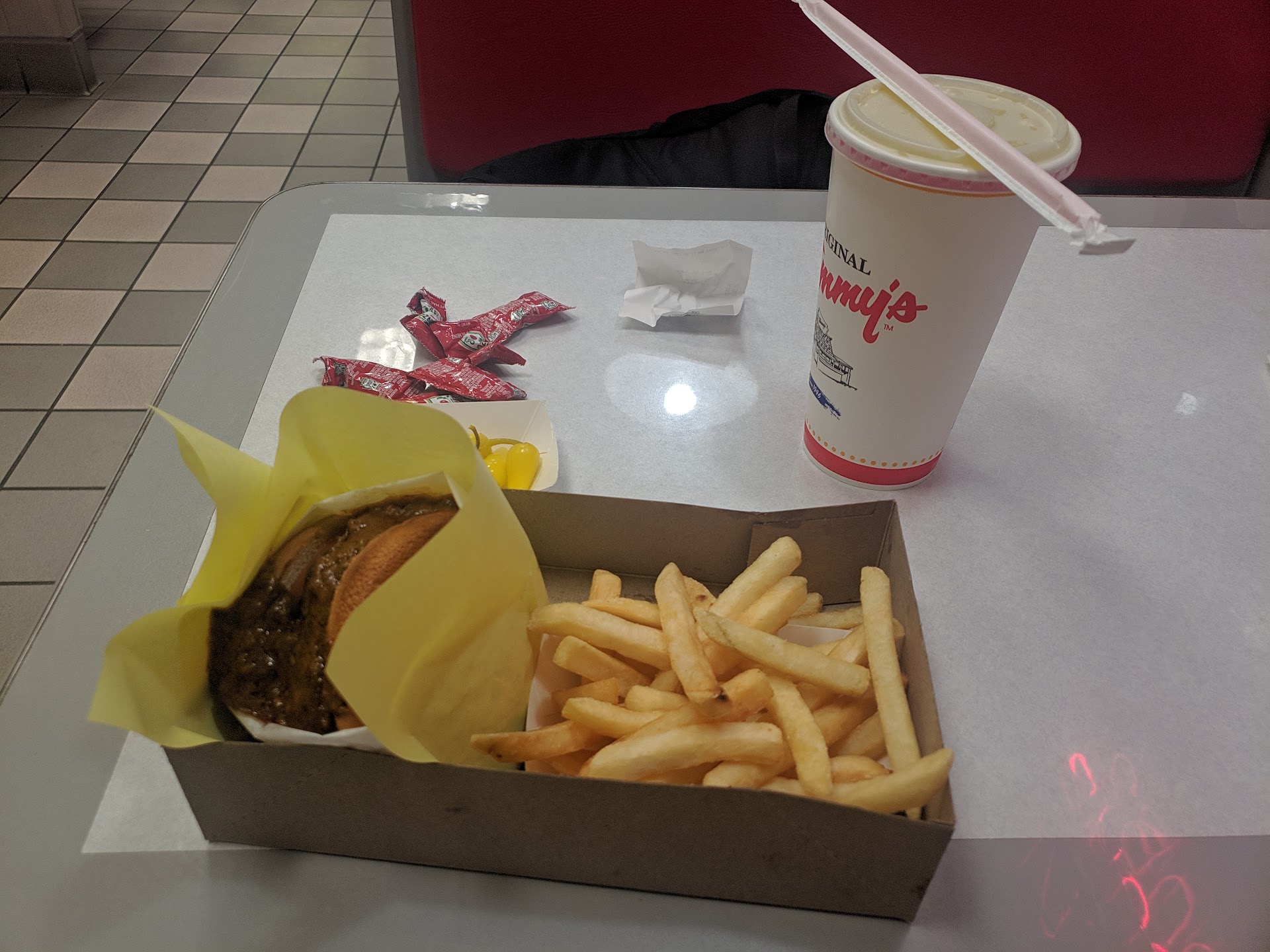 Ah the faint smell of urinal cakes and chili waft throughout the 24 hour Walmart feeling of a fast food place.