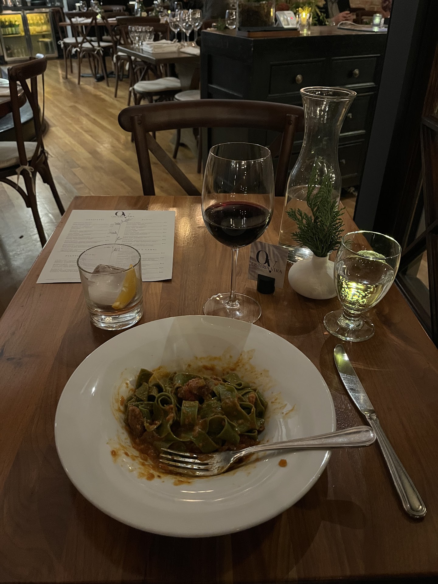 There are various wine options and some spritz and beers. I have only tried a few things from the menu: the crispy brussels sprouts that I really enjoyed. For my entrée, I decide to go with their popular Cacio e pepe. They come to the table and start doing final preparation in the cheese. The pasta were delicious. Cooked perfectly. I truly enjoyed it. Saw some other plates that looked very good - like some of meat ones.