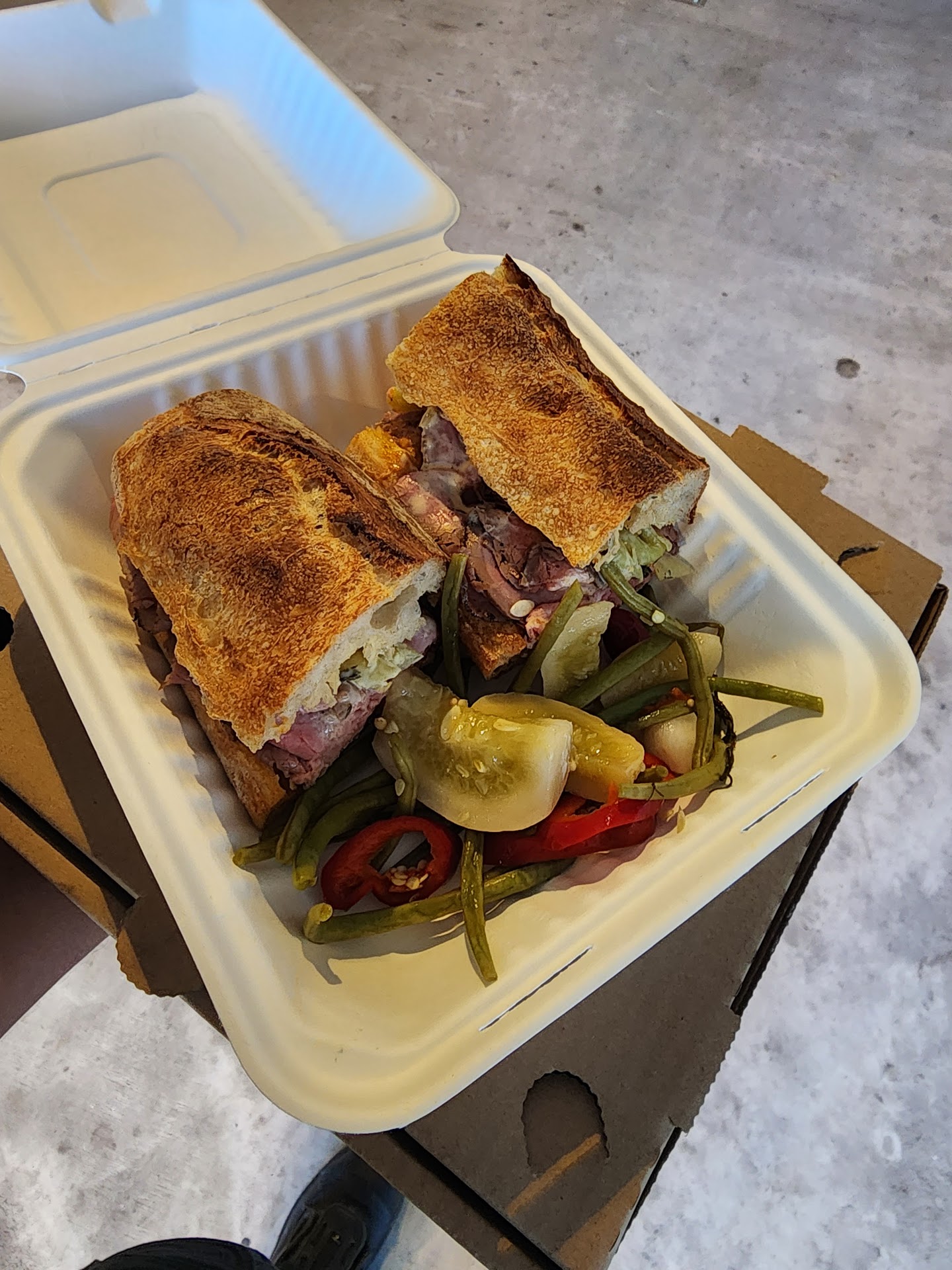 Roast Beef Sando Green Slice Red Slice Caeser Salad