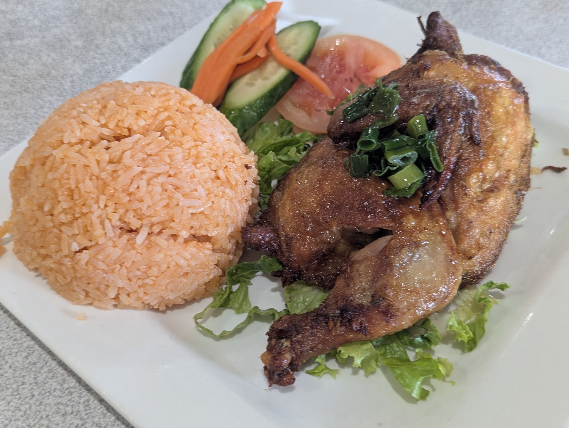 However it did not live up to those ratings. The service wasn't the best and the food matched. When the waiter came to our table they stood behind me and didn't say anything so I had no idea they were waiting to take our order. I ordered the Marinated Chickenw ith fried rice. The chicken, while it had good marinade, was dry and over cooked. The fried rice also tasted unusual. My companion similarly wasn't thrilled about their order either.