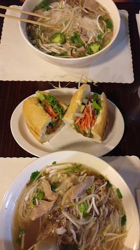 I stopped by this Pho place today to grab lunch. I was in the area picking up my suit so I figured I would try this place out. I looked at their menu online and though the price was reasonable. I found parking easily here because I came before the rush because after lunch, finding parking can be difficult here. I came right when the place open so they were not busy at all. You can place your order over the phone but since I came when they just open, I put in my order in person. I got the 4 piece spring rolls and bbq beef bun me. The lady said it should take about 10 minutes for my food to be ready so I waited inside the restaurant. The place isn't that big inside but I guess it works for them. My food took about 20 minutes to be ready and I took it to eat at home. I thought the spring rolls were okay but not the best and they don't give you much sauce. The bahn mi was delicious, I just didn't like the tomato in it and it seems smaller than other places. If I have a chance to come back, I might try their pho since I saw they have free refill on...