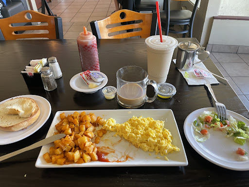 However, this is more of an illusion. The restaurant is normally dirty, I've been sat at tables and had to request they clean them more than once. The food is normally a let down, today I got a grilled vegetable salad with goat cheese and a Greek bagel. The grilled veggies were cold, they didn't bring out the garlic toast the salad comes with, and the Greek bagel was a sad thin mess at room temperature.