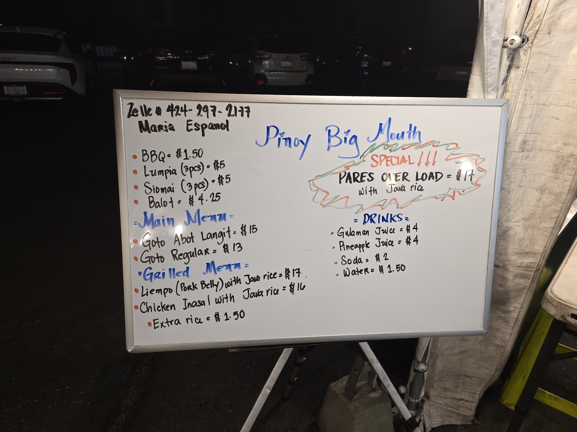 Read moreThank you so much to Onie, Angeline, and Eric for running the best Philippino BBQ spot around! My boyfriend and I come here often on late night food runs and we are always greeted with kind smiles and comfort food. Get an order of lumpia and the gulaman drink, the balut is also perfectly prepared. They have a large selection of fresh meats to BBQ while you sit around the heated grill with calming jazz playing. Could also be a cozy, cute date night...
