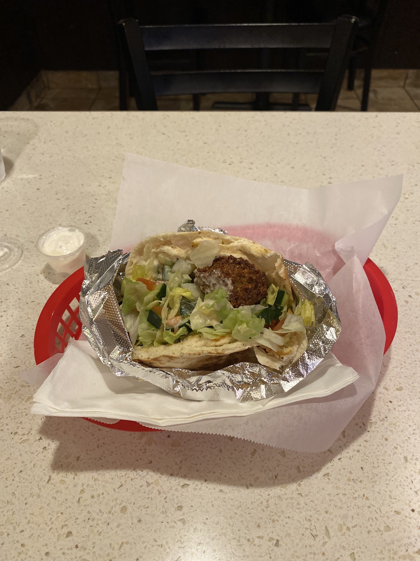 The shawarma flavor is great, the texture is great. I wish the shawarma was a little more moist, but I'll admit it was pretty late, they were close to closing. So I'll definitely have to come sooner next time.