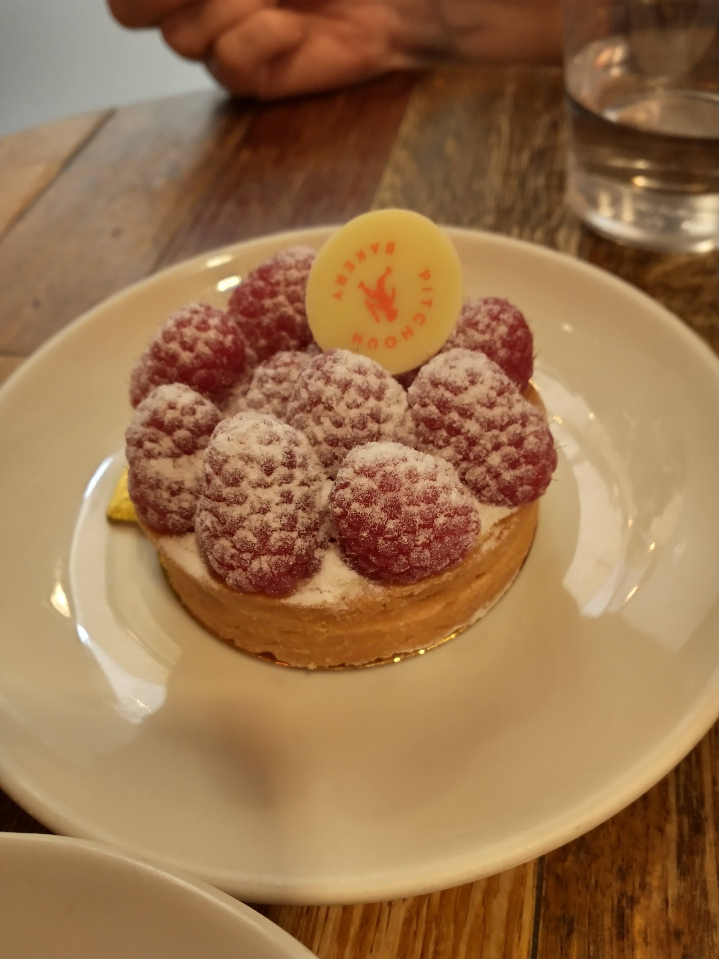 The dessert choice here today was a delectable looking raspberry tart-fresh berries perched on top of a light cream filling in a shortbread style crust. Every bite was wonderful. Wish Iād chosen to buy one to take with. I will say that if you enjoy French pastry or a slice of French style cafĆ© culture this spot should fill the bill when visiting Los Angeles. Itās going to be a staple of our dining whenever we...