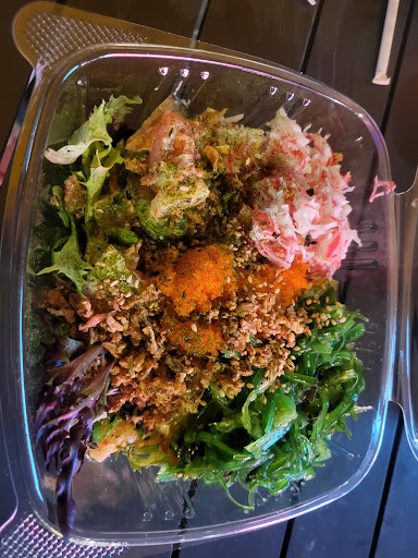 the burrito was SO GOOD!! it’s my first trying a sushirito but they made it so well. the combinations of flavors and the fresh salmon was amazing. the poke bowls were so good too!! their sauces were so yummy and the SAVORY TUNA...