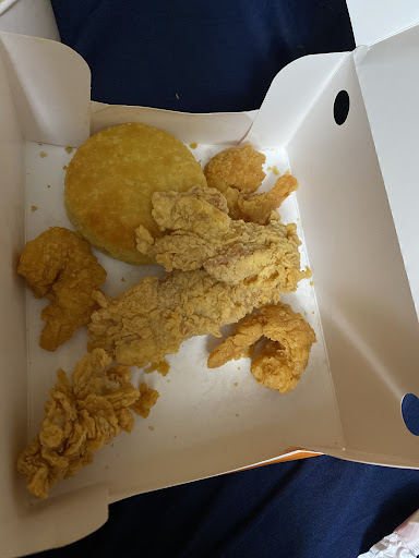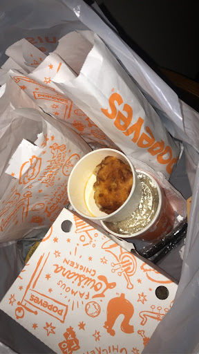 So i get off the train not knowing what time it was. (Device had no juice) meanwhile thinking to myself I'm hungry. BOOM! I see Popeyes and hope the dining area was still taking walk ins.(hadn't had Popeyes in a while so why not!) Great news they were, i proceed to open the door and get me and Swhin through. Once inside i have 3 sets of eyes look at me(apparently the conversation was really delightful because i was the one who did the greeting! #thanks now I'm at the counter telling the cashier guy to give me a minute to look over the menu. OKAY (ME) I'm ready now. May i have a number two please, (HIM) You want a number 5 because it has three wings... So i get to thinking idk if 3 wings compared to a thigh and a wing is more filling. (ME) no a number 2 (HIM) it's the same price Now I'm thinking like okay fine whatever, i really just want some fresh good spicy chicken, red beans ans rice, with honey all in my biscuit .. i get my order. Another employee makes small talk and offers to OPEN THE DOORS for me on the way out! Cool!! #nicesthospitalityoftheday. I even rode off telling him because of that i would write a review for the store!! I finally make my home you guys and I'm sorry i cannot vouch for the bloody, undercooked, smallest wings fried i received. If only i could've made this review positive and worth it. However I'm holding to my end of the deal, next time Popeyes let's have proper, fresh chicken fried. Greet your customers with a smile, do not insist on pressuring someone to buy what you like or...