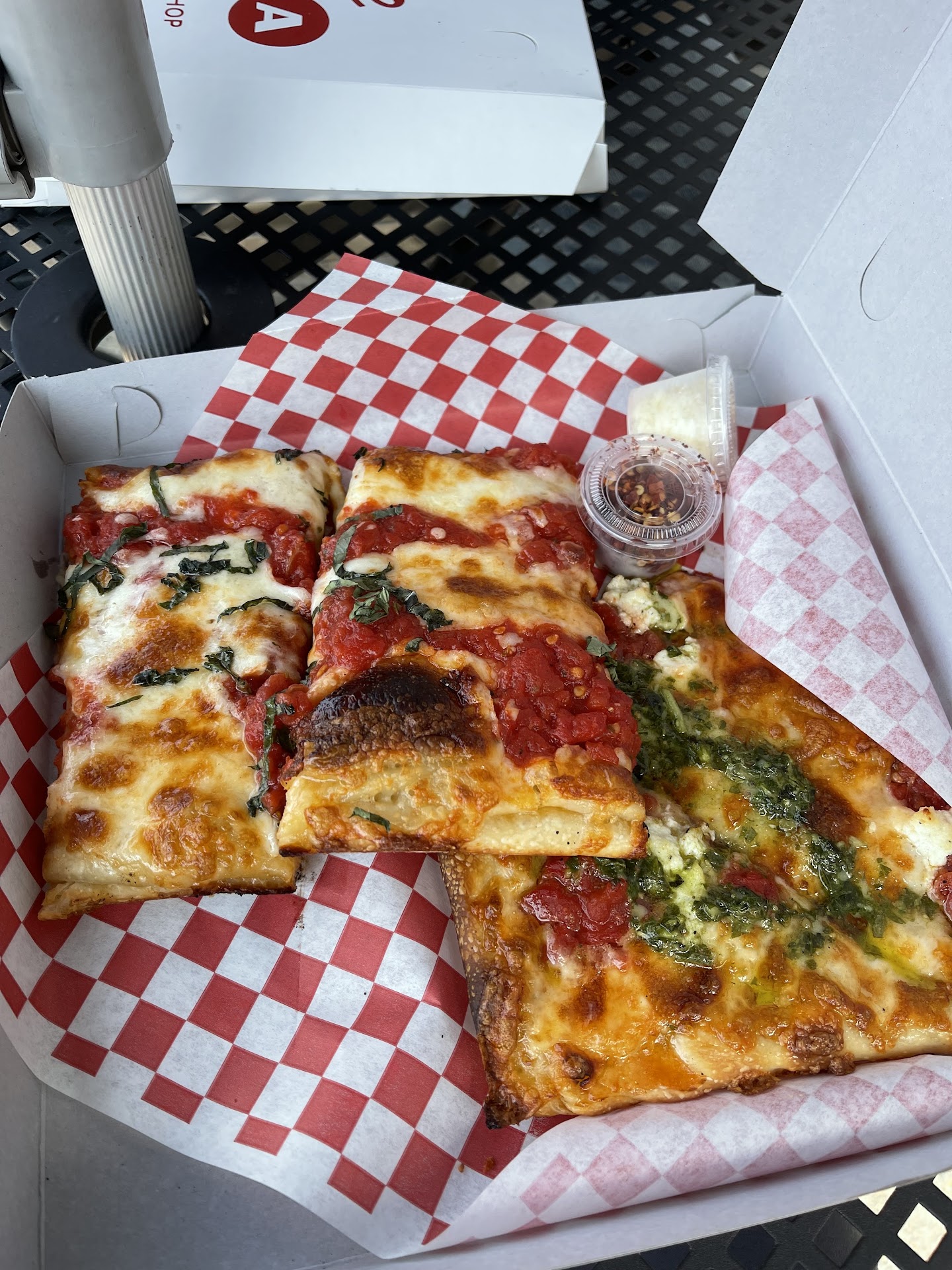 Read moreWe ordered a box of pizza was just classic cheese and basil and some garlic knots after multiple local Californians highly recommended! We were definitely not disappointed! It is definitely one of the most unique pizza flavors I have ever had. The crust is thin yet crispy and the sauce is salty and rich! Due to Covid, you pay and pick up your pizza from a small window outside the store, so I only got to admire the witty art pieces and pizza puns that are around the store from a distance. The garlic knots were addicting and you definitely wonât get enough! We picked some up on our way to the airport back home because we needed to give this place one more go before we left! I would definitely order ahead if you are looking for a pie, I believe they only sell individual...
