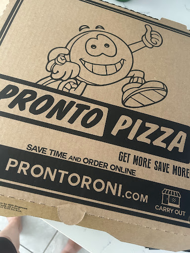Read moreAs I arrived Prontos Pizza was very clean. I didn't have to wait that long to receive a fresh out of the oven pizza. The staff was very polite and professional. My Pizza overall was good but lacked tomato sauce and the dough needs some work in a sense of flavor. Overall pizza needs some attention and has the potential to be a great pizza at a...