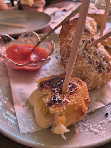 We did call ahead to ensure there would be a table since it was dinner time on a beautiful Friday night, The place was nearly at capacity when we arrived, however, the service was absolutely wonderful, each contact we had was friendly and helpful. The menu is rather large so I'm glad we had a larger party so we could share dishes. Absolutely every dish was brilliantly prepared and service was fast. We had 3 different types of pizza, a focaccia sandwich and the standout dish was the fried squash blossoms -- do not skip the marinara sauce! Truly everything was packed with flavor and textures were spot on, just an absolute delight for the palate. Dessert was equally delightful and at no time did we feel rushed to depart like so many busy restaurants. This experience was more reminiscent of a European restaurant in all the best ways.