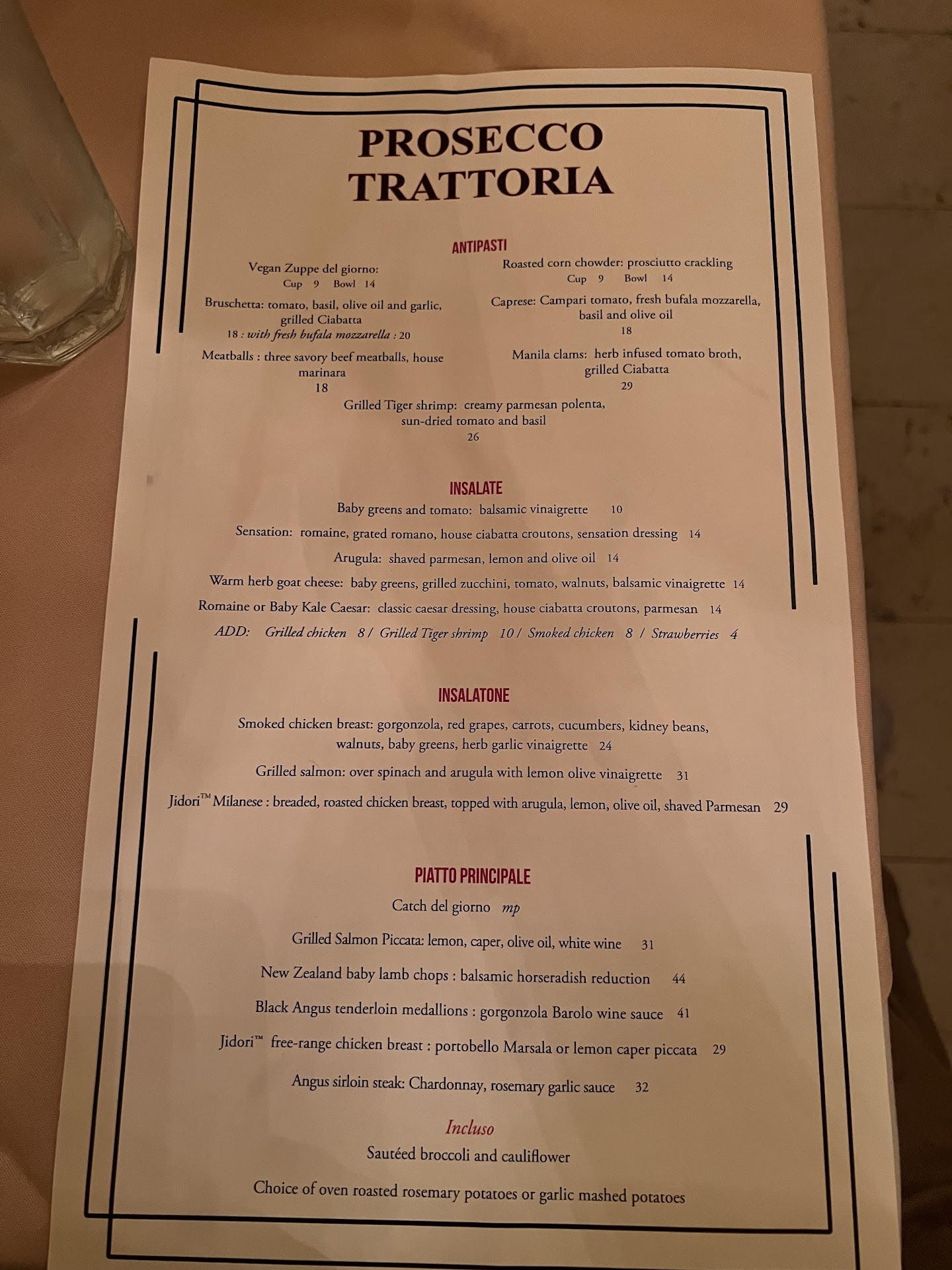 Read moreI was just at Prosecco Trattoria for dinner, and an interesting thing happened. A woman attempted to PARK in the white 'loading zone', at which time Prosecco's manager Eric calmly went outside to point out to her that she was parking in a LOADING ZONE... and did I mention that she MOVED THE PROSECCO sandwich sign which is IN THE LOADING ZONE so she could park where she's not allowed??? Eric was, as always, kind and professional, at which time the woman lost her mind, begrudgingly moved her car (still left about 18 inches in the white, because, you know, SHE CAN DO WHAT SHE WANTS), and proceeded to storm to a neighboring business while giving Eric the FINGER!! At NO TIME did Eric respond in ANY way but kindly and professionally, and he returned to the restaurant and calmly served the patrons with a smile on his face. This woman then posted a 'review' blasting the food - how would she know, since she NEVER ENTERED THE RESTAURANT??!?!? I can say with complete certainty that the food at Prosecco Trattoria ROCKS, as well as the wine, AND THE SERVICE. Make a point to come and enjoy this neighborhood gem as soon and as often...