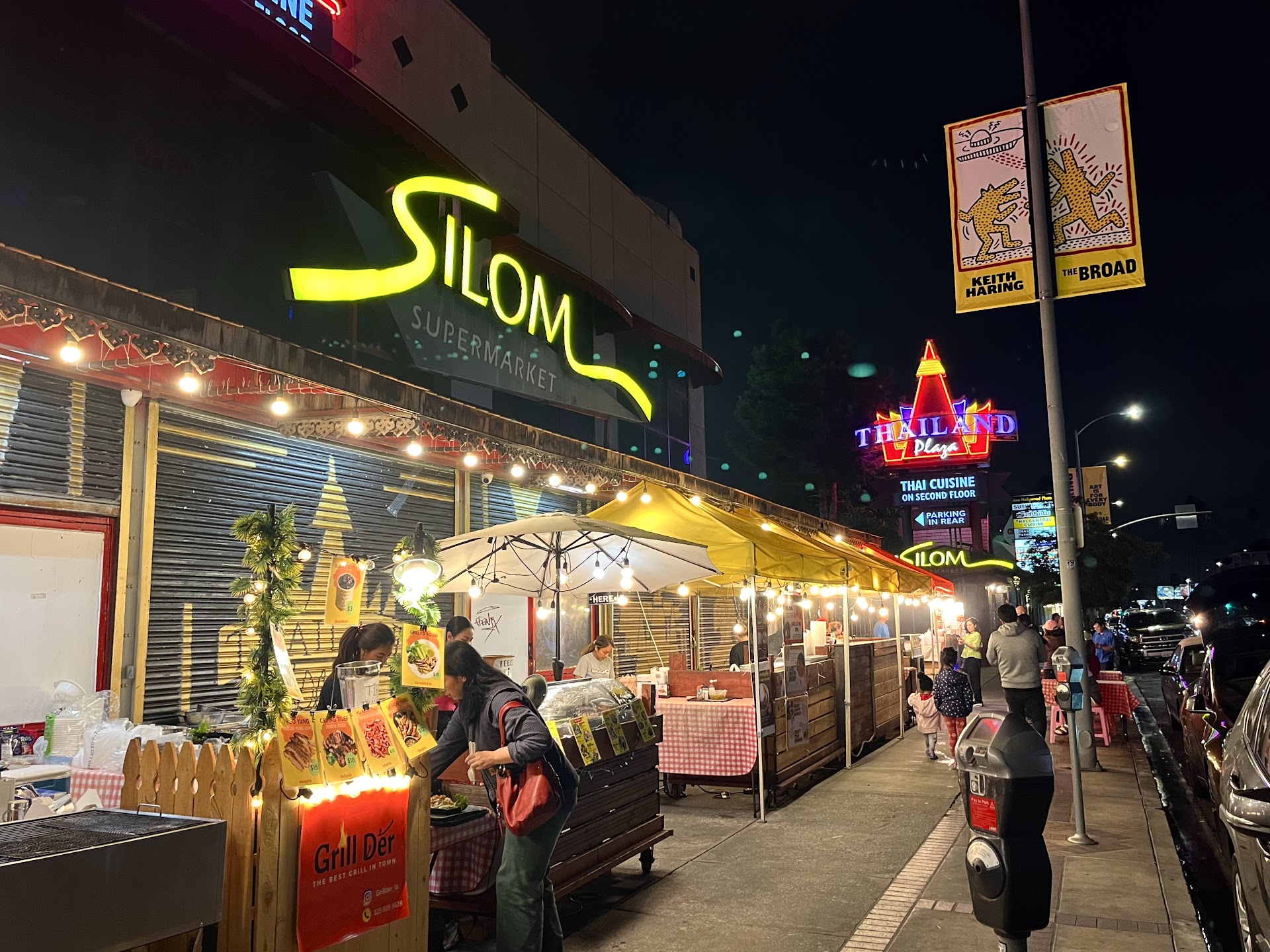 I visited Lad Nah Silom on a Friday night with my friends and we had a great time enjoying the authentic Thai street food experience. The restaurant is located on Hollywood Blvd, near the Thai Town sign. It has four stalls that offer different dishes, such as rad na, pad thai, papaya salad, grilled meat, and desserts. We ordered a variety of dishes and shared them among ourselves. The rad na crispy noodles were my favorite dish. They were crunchy on the outside and soft on the inside, topped with a savory gravy and tender beef slices. The portion was generous and satisfying. The pad thai was also delicious, with tangy tamarind sauce, fresh bean sprouts, and roasted peanuts. The papaya salad was refreshing and spicy, with shredded green papaya, tomatoes, carrots, green beans, and roasted cashews. The grilled meat was juicy and flavorful, with a choice of chicken, pork, or beef skewers. The desserts were sweet and indulgent, with options like mango sticky rice, coconut ice cream, and Thai crepes. The service was friendly and fast, and the atmosphere was lively and fun. We felt like we were transported to the streets of Bangkok for a night. The prices were reasonable for the quality and quantity of food. I would definitely recommend Lad Nah Silom to anyone who loves Thai food or wants to try something new and exciting. It’s a great place to go with friends or family for a casual and...