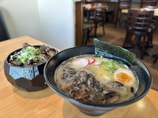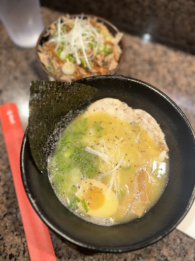 I came in around 10pm ik is kinda late but the server girl was so nice, staffs are very attentive. Food came out fast i even bought an extra pork chashu rice bowl as its only $6 extra in the ramen combo. The ramen came out pretty quick and it is delicious, i was a bit skeptical seeing the chicken is a white meat cut but boi i was wrong, i don’t think I’ve ever tried any white meat cut that is as tender, soft n juicy like how they make it here so it was a very good surprise. Broth is creamy, egg is running but embedded in the broth flavor so well. They gave u lots of noodles so that’s another plus! The bowl might look small but this thing filled me up to the brimmmm i couldn’t even eat the rice so i packed it home. The interior has a cozy vibe with many tables, booths and seats at the bar. They also have a alcohol deal at $3 for beers too. I will be back again to try different ramen types since they all look...