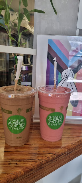 The cane juice is smooth and pleasantly sweet on its own and good when mixed with fresh young coconut juice, but I really enjoyed the blend with cayenne peppers, lemon and ginger - it has a good kick. You can drink what you get at the bar counter surrounded by psychedelic bits of artwork, but I ended up getting a smoothie to take with me. This was blitzed it up in front of me before sealing it up in a handy bottle.