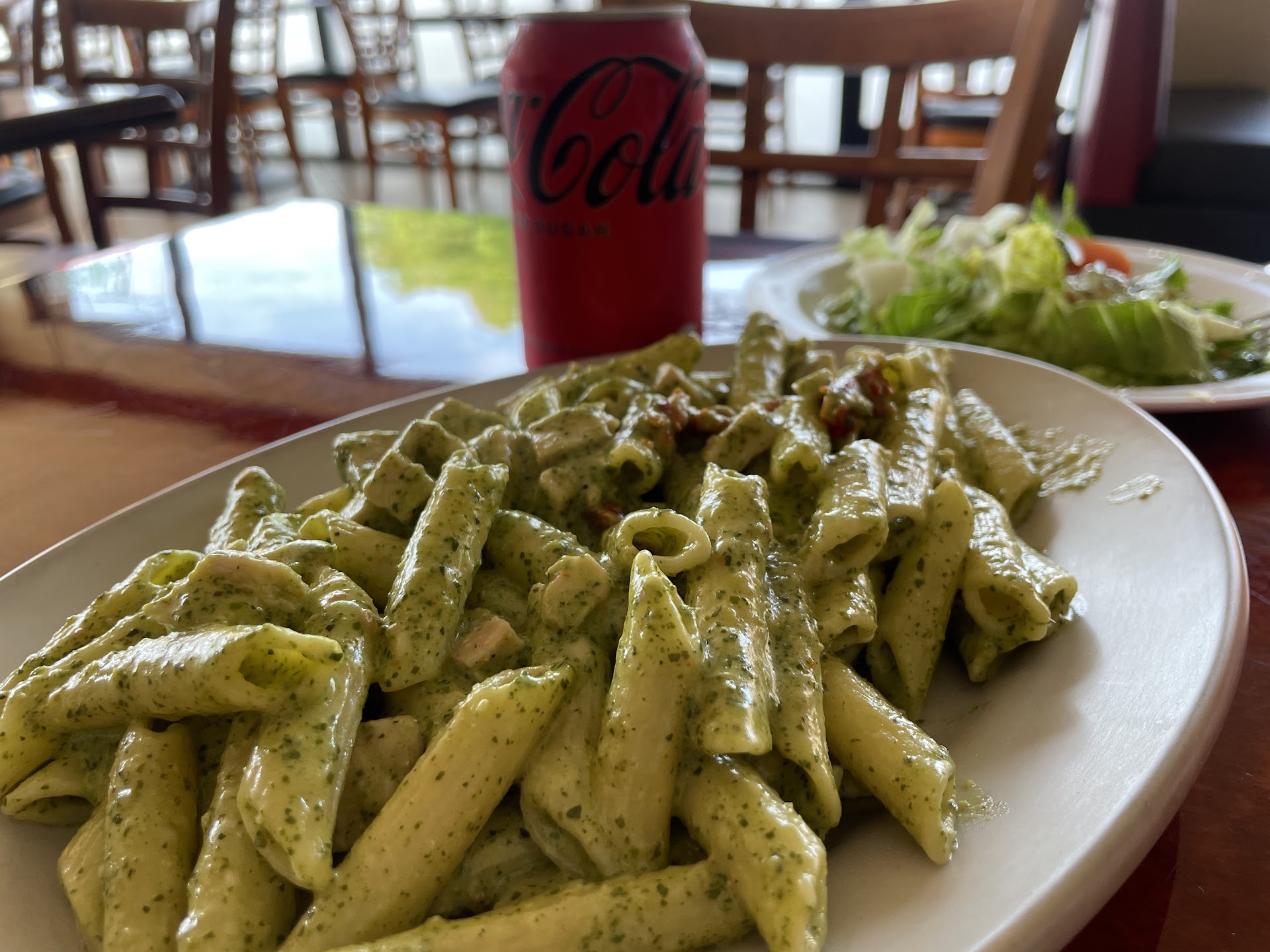 I recently had the pleasure of dining at Reno's Pizzeria and I have to say, I was blown away by the quality of the food. I ordered the pesto chicken penne pasta with garlic bread and a house salad, and let me tell you, it was one of the best meals I've had in a long time.
