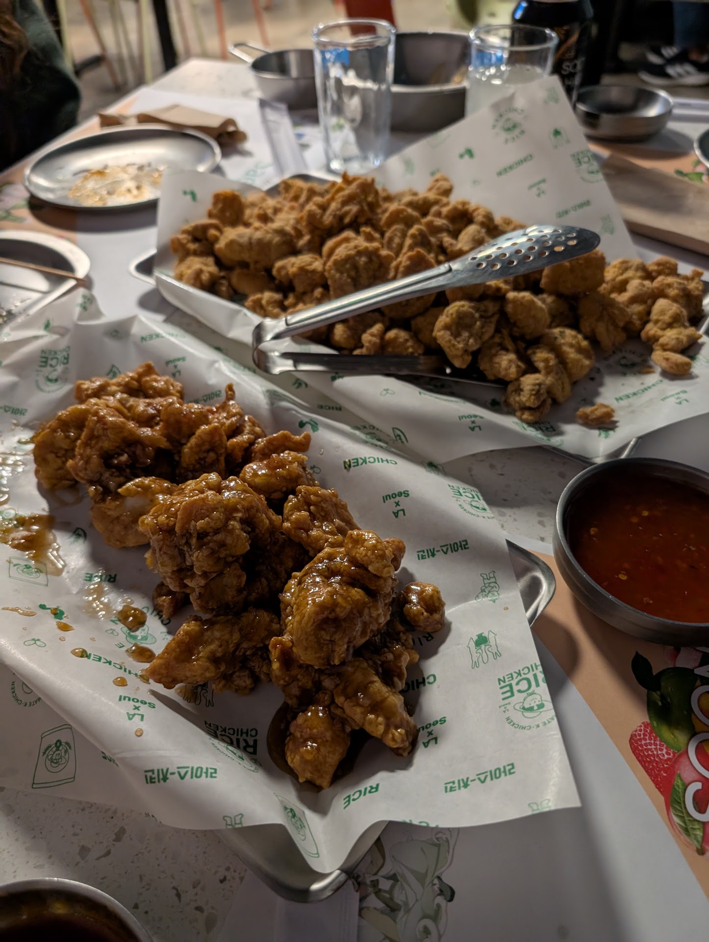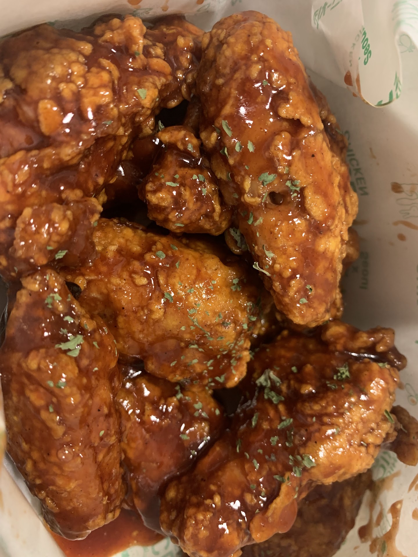 Chicken was nice and crunchy and moist. I heard about this newly opened kfc spot in Ktown and decided to eat in and give them a shot. The owners are really nice and has a mom and pop feel about it. I had the soy jade 10 piece wings and it was quite delectable. Heavier on the salty soy than garlic flavor. I would definitely come back and try their other flavors.
