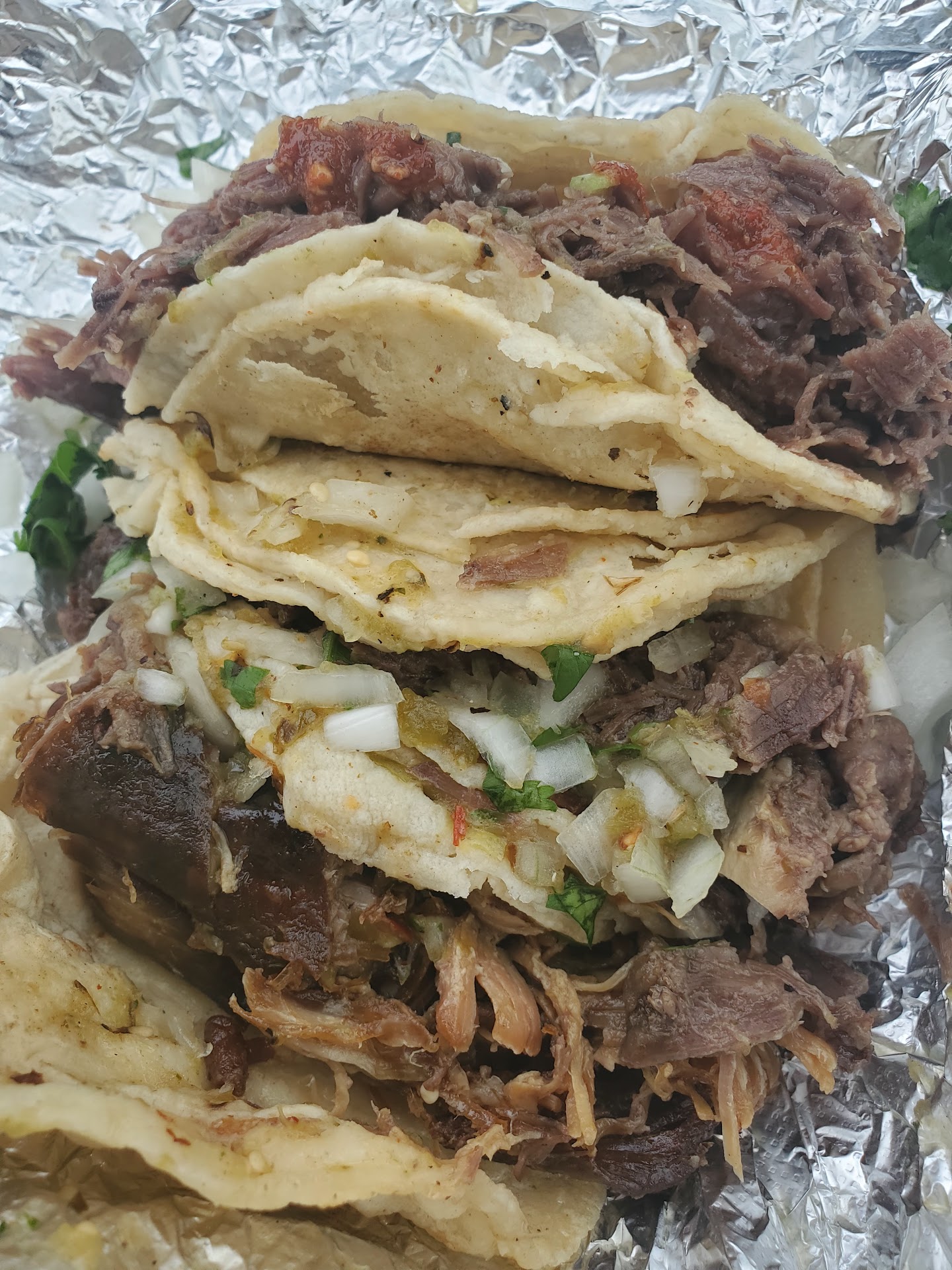 Average. Fat tacos. Lengua (whole lotta fat, i would order it aggain in case it was better. Wasnt my favorite.) asada and barbacoa. They were good. Spicy red sauce, but good. Salsa Verde was very good. We had finished and got full on the carrot and onion sides. Huge, chunky, and well balanced. The refried beans were made with manteca (lard). That did t rake away from the taste. Wasn't overwhelmed in Manteca, which takes away from the flavor of the beans.