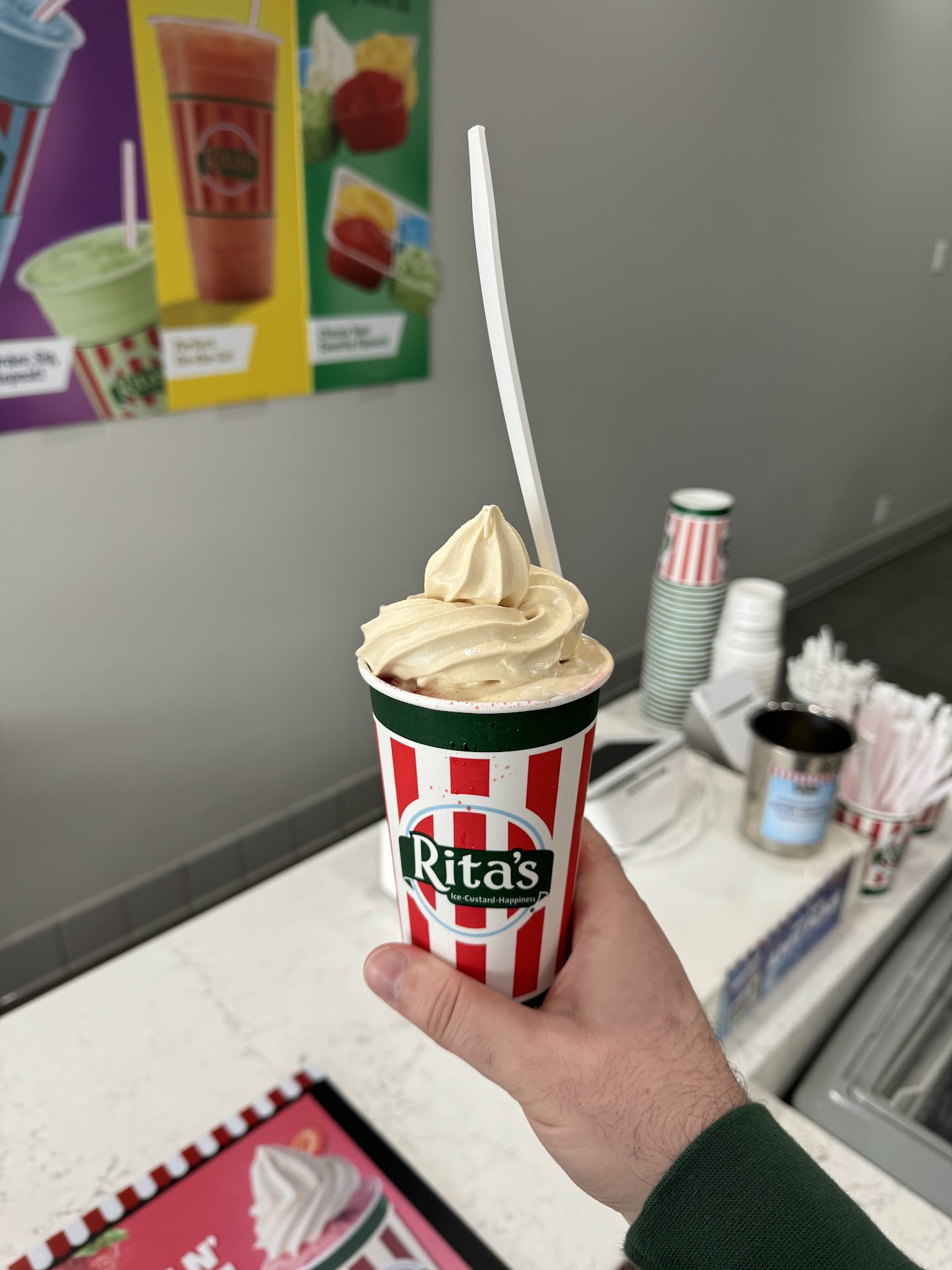 Read moreI’ve been getting Rita’s since I was a kid and I loved it then and I still love it. It’s always a great sweet treat and it was again today. The owners and staff are really polite and were very welcoming. I have tried almost all of their different drink options, but the Italian Ice is still my favorite and their best seller. Today I chose a large cherry with salted caramel custard on top and it was absolutely fantastic. I don’t think I would ever not be in the mood for it. The only downside is when you get it you will immediately want to get another one soon after you finish it. They have a very large parking lot attached so parking is free and easy. They have some tables on the inside if you want to stay indoors while you finish your treat but most opt for takeout. I definitely will be back...