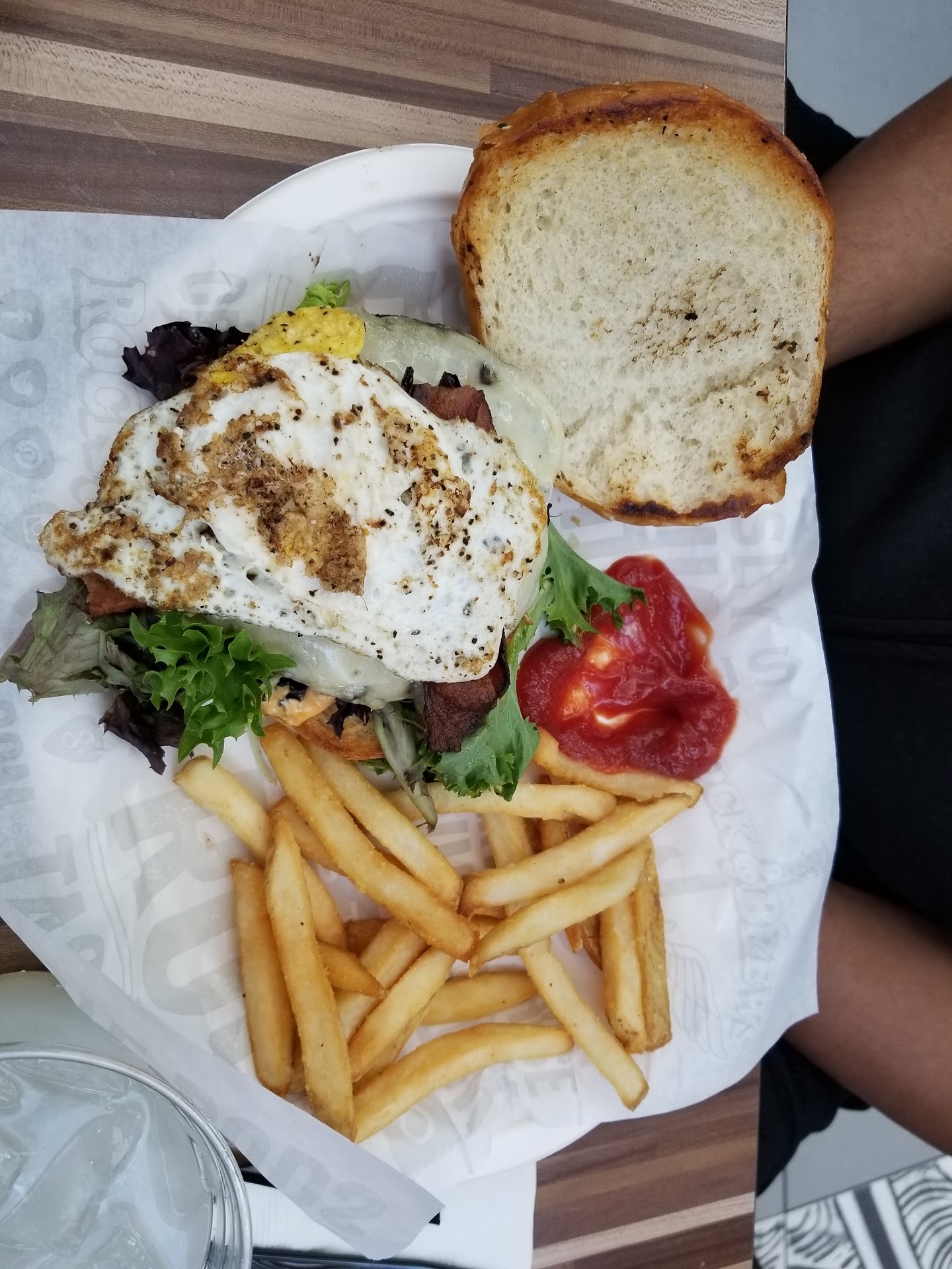 Read moreMy recent visit to Rock & Brews in LAX Terminal 5 left me with mixed feelings, as the dining experience fell short of expectations, particularly given the price point and the airport setting. Upon arrival, we were promptly seated and directed to a QR code for ordering. This "self-service" model, which was only noted on a small sign by the water station that I found halfway through the meal, meant there was no opportunity to ask staff for recommendations or clarification on menu items. This can be a challenge if you're unfamiliar with the cuisine, and in an airport setting, efficiency and clarity are even more crucial. Our drinks arrived quickly after ordering, but without any welcome or interaction from the staff member who simply placed them on the table and left immediately. I had ordered a soda for my wife, as there was no option for water on the digital menu. We later discovered a water refill station, but it was not brought to our attention. My wife's soda was not refilled, and it appears there are no free refills available â which for an $8 tip, provided for essentially no service beyond dropping off a drink and food, felt particularly egregious. The food itself was a bit of a gamble. I ordered the fish and chips. The fish had a good, crispy batter, but the interior was a bit too soft for my liking. The fries, however, were a disappointment. Maybe about 25% of the fries had a good flavor and texture; a good portion of them were soggy and lacked flavor, and overall, they were a low point of the meal. My wife's "Oklahoma Smashburger" was a mystery. It wasn't a smashburger in the traditional sense, but the patty had a decent taste, enhanced by a tasty sauce. The quality of the patty itself was lacking, and the bun was noticeably not fresh. Her fries were also subpar. Throughout the meal, no one checked on us, and we had to get up to replace our ketchup. The combination of minimal service, inconsistent food quality, and a price point of $20-$26 per meal makes this a place I would not recommend or return to, especially when looking for a satisfying meal...