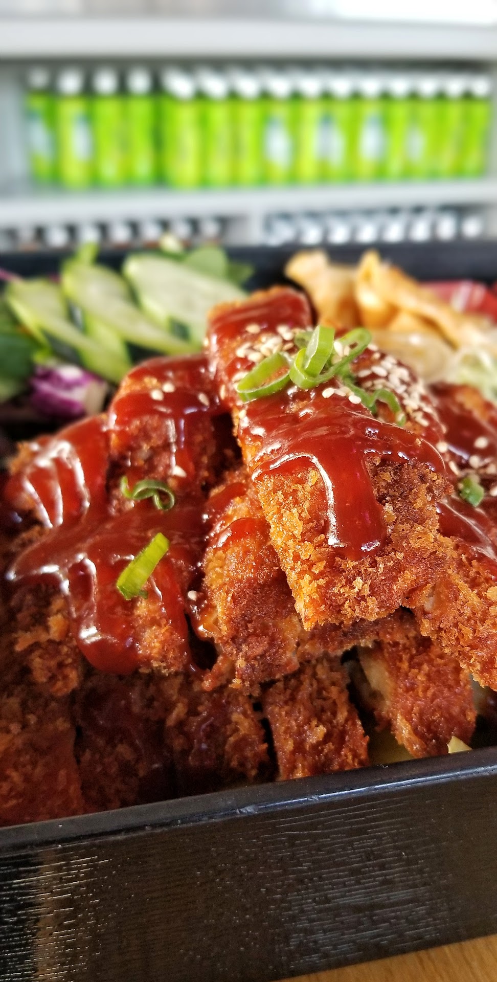 Katsu Bento Box - This box is like a course meal. Besides chicken katsu & rice, there are also California roll, gyoza, salad & steamed vegetables! Well balanced meal for sure~