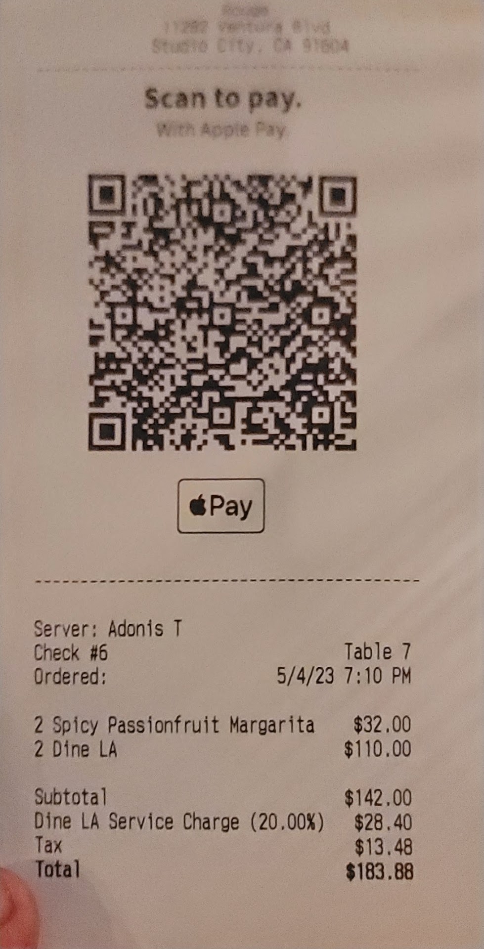 Read moreGrade C+ ( 79) Not enough to get to a B. The good first: First of all the servers were great, nothing to take away from that. The Beets by DRO was very unusual in texture but it worked for me, I liked it. The Spicy Vodka Lumache Pasta was surprisingly good, we liked it. The Pineapple express was again unusual with the things sliced pineapple slices used in the place of dough to house the cream inside, charred on top for a unique taste, I liked it. The Passionfruit Chocolate cake was ok, but it could have been so much better, guys put the hazelnut inside the cake and a bit more air and it would be amazing. The garden Gem salad was ok, nothing unusual there Now the bad: Passion fruit Margarita, if I go back (doubtful) I won't get it again, they fill it up with so many small ice cubes that there's hardly any drink in there! Come on guys you charge so much you should not use that trick, it's like a happy hour trick. The Shoes K Town BBQ was not very good, the meat was VERY tough even though it was med rare or rare. The prices are very high and I didn't like the fact that they put the tip on there and when they bring the machine to charge it is asking you to click an extra 5 or 8%, just too many tricks here and there. Not happy with this restaurant. Oh, one final note, for those that day the Atmosphere was great, what atmosphere? It was fairly average,...