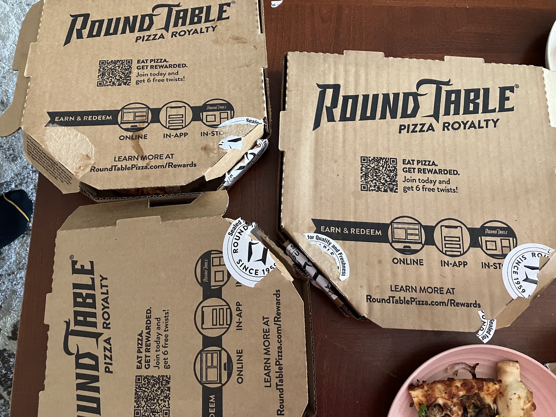Round table failed... we arrived at 10:05 on Saturday night made our order and then 20 minutes later were told that they were closed at 10:30and that we couldn't have any plates (other than 3 small paper plates) and they let us know we were not wanted at their restaurant. We decided to eat at a table when the food finally arrived because my granddaughter was hungry, later she needed to use the bathroom (badly) and were informed that store policy did not allow anyone to use the facilities and when informed that the 9 year old couldn't "hold it" we were informed that it's not their problem and then the "Manager" walked away....if this is the way they treat customers then you don't need our business any longer. We were then offered 50% off of our bill for the "inconvenience". We were also instructed to "find somewhere else for my granddaughter to relieve herself".... really!!? Everything around the area was closed. So instead she relieved herself on the sidewalk like a dog. I will make sure to never go to this...