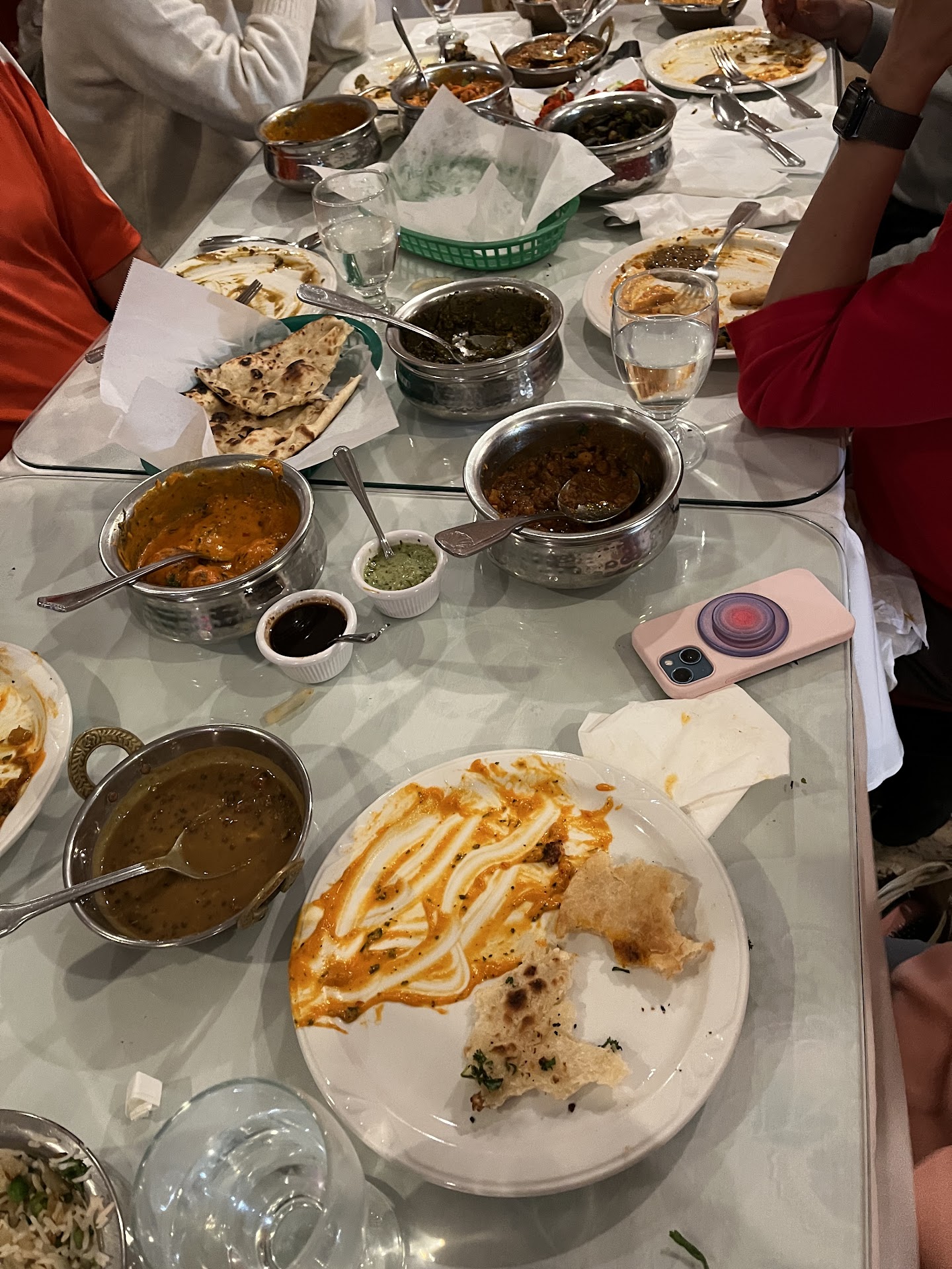 The starters I tired were: traditional veg samosa, Gobi Manchurian, Hara Bara kebab, aloo tikki, malai chicken served with mint chutney and tamarind sauce. With no room left for main course... I still tried the chicken tikka masala with garlic naan. I prefer the latter over butter chicken bc it’s exactly the same except the sauce comes with white meat; Butter chicken comes with red meat. And wait! So I made room for dessert too- Ras Malai.