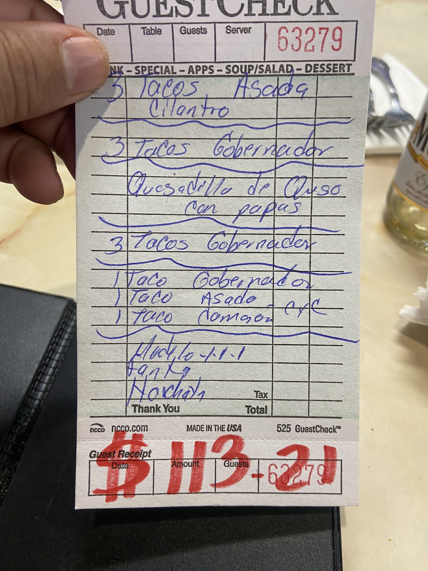 Will not go here again, just because of the misleading way this owner works. The menu prices are not what they say. I was over charged by $3 on several items. Was charged $3 for what was supposed to be a bottle of coke and was a can. The cook tried justifying the pricing by saying with taxes and the menu price I was paying almost the same, um no it’s not. He also said I was getting as much shrimp in the burritos as I was getting in a dinner plate, but I asked for $10.95 shrimp burritos, not $14 shrimp dinner plates. The garnachas are not what garnachas are supposed to be, they were a small fried tortilla with overcooked carnitas, they were so dry. Id rather see the price I am paying and let me be the judge if I want to pay that, don’t surprise me with a jacked up bill after I ate. Will definitely not...