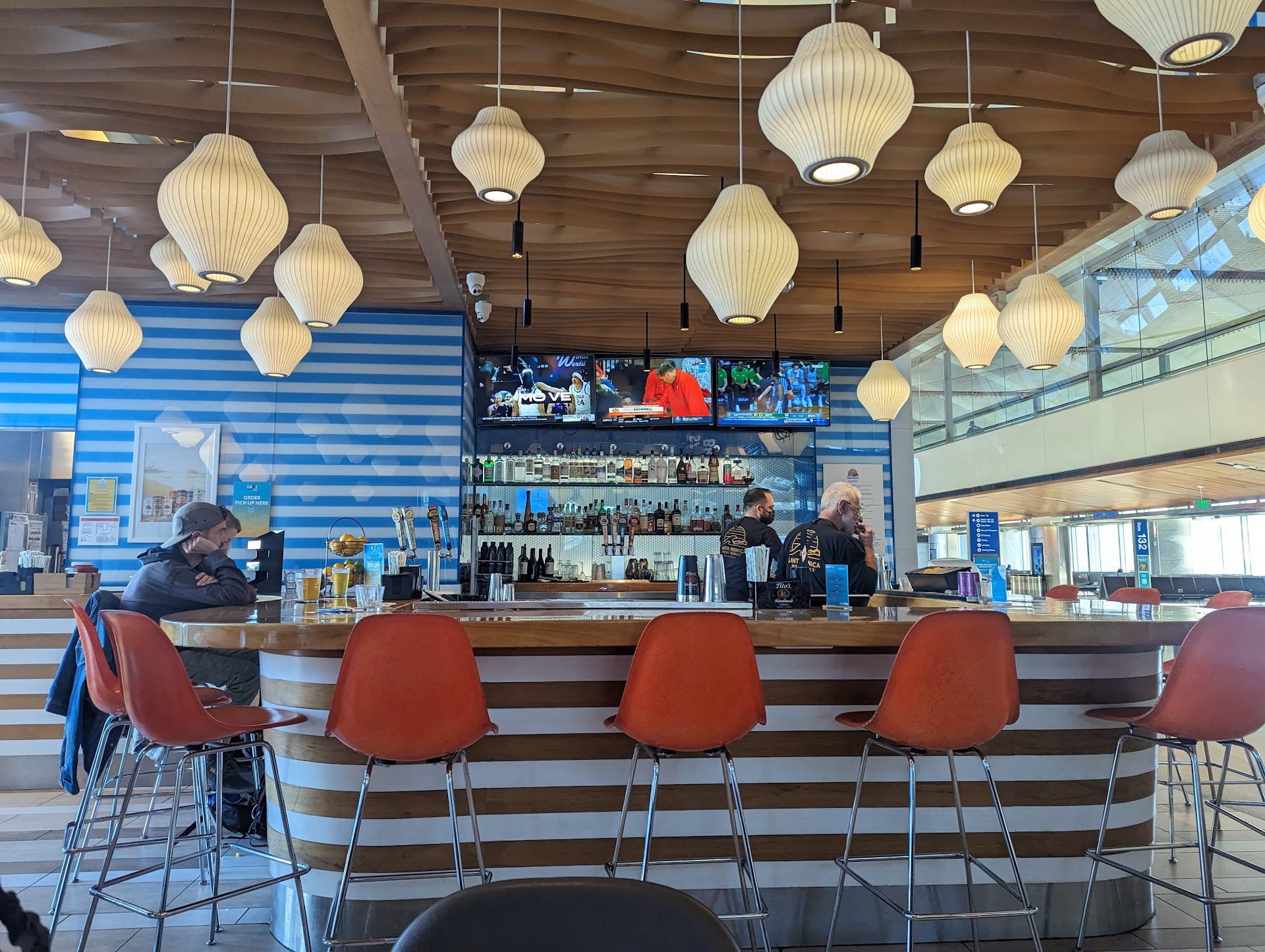 Read moreSteven is a lovely, attentive bartender. He greets you with a cheerful welcome and a menu to order. You have to order at the bar even at the tables around it, which keeps to its relaxed nature. It’s a very casual atmosphere, as if you were actually in Santa Monica by the beach. It’s a great place to go before a flight if you’re at the 134 wing of the airport. I got the grilled chicken salad, which was actually really tasty with the dressing. The menu is limited to ensure quality food. I’d recommend grabbing a beer or wine here if you’re waiting to take off to your next...