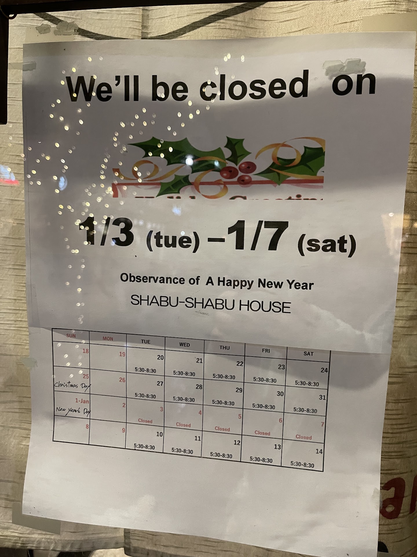 A revision of a long standing Shabu Shabu restaurant that was closed about a year ago. It is now called Shabu House and although the sign on the wall says "Since 1991" the experience has more differences than similarities. The beef cut with a deli slicer is still present now in the rear of the restaurant in a glass display area. The horseshoe counter has been converted to have seating on both sides, increasing seating but appears to limit staff movement. The food has also been changed with the classic shabu shabu ingredients supplemented with more pan-asian hot pot offerings like fish balls, fish cake and potato and lunch offerings have been changed to include dishes like Korean-style ramen and kimchee fried rice.