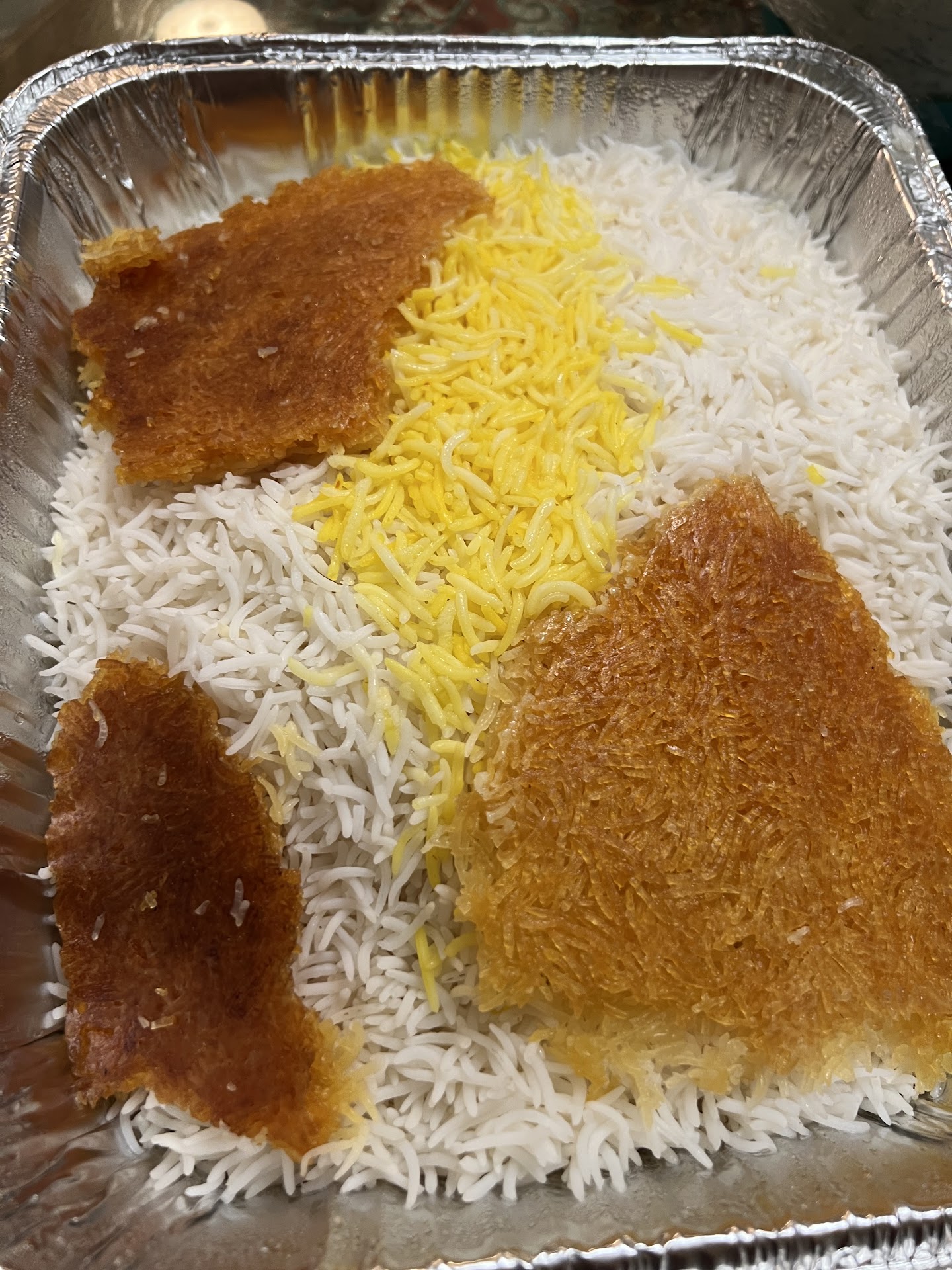 We got it home, and the effort to include everything was wonderful. Besides the expected beef koobideh and chicken kabobs, vegetables, a massive amount of rice with tahdig left on top, bag of pita bread, and standard salad, there was a container with fresh-cut onion, plenty of butter, lime wedges, and quite a few packets of sumac (we have plenty left over).