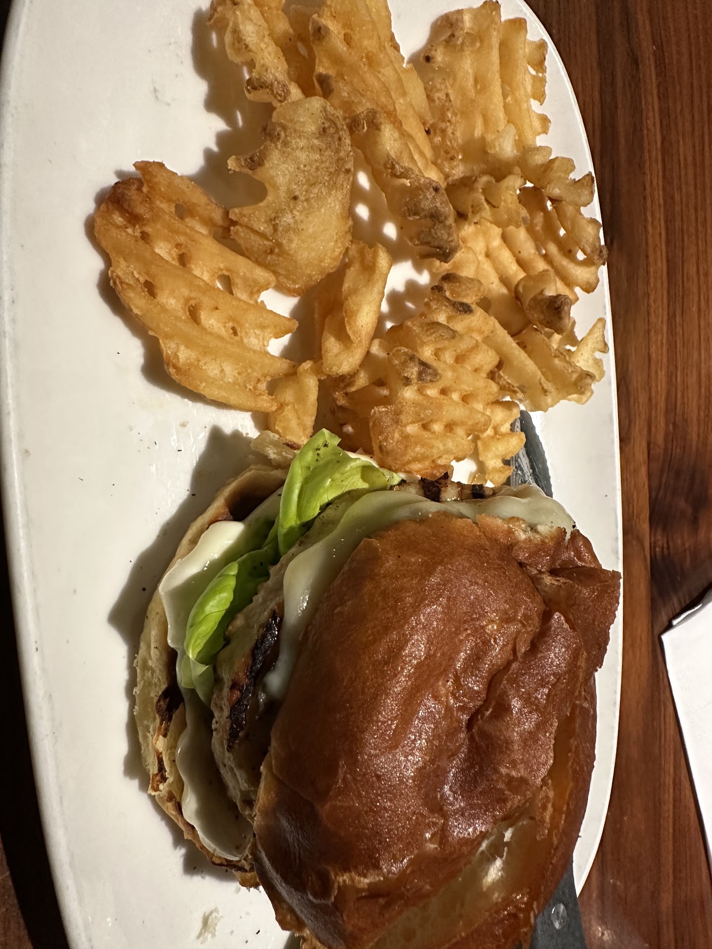 I opted for the Mushroom Swiss Burger, and it was truly amazing. The combination of juicy mushrooms, melted Swiss cheese, and perfectly cooked turkey patty created a flavor explosion that left me wanting more. The accompanying waffle fries were decent, although they didn't quite steal the show like the burger did.