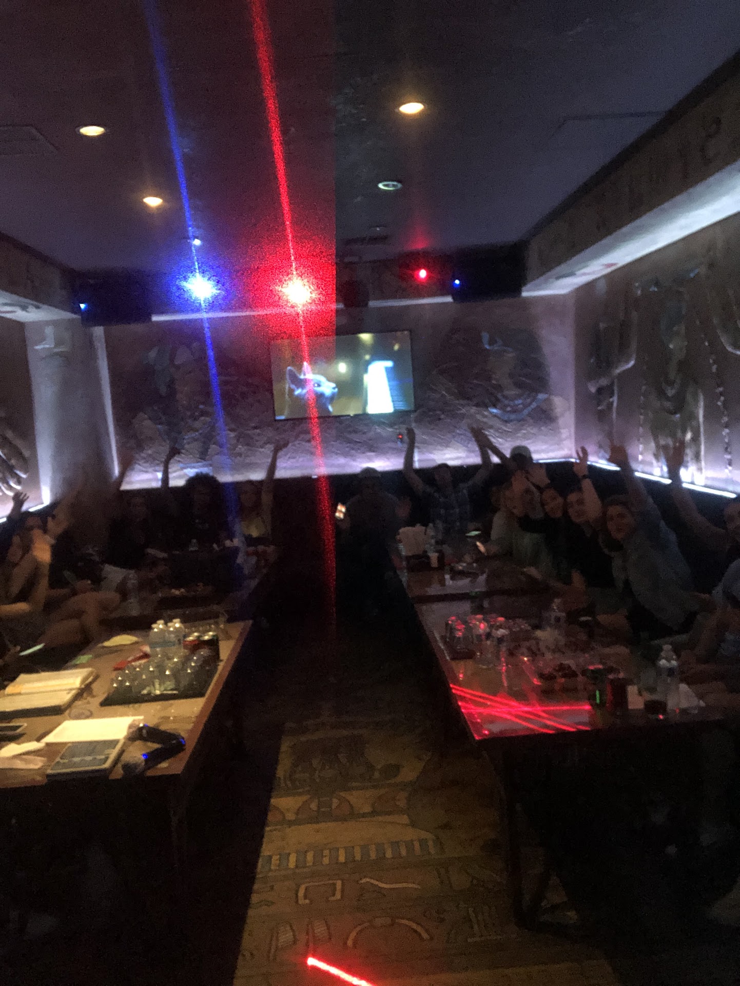 Because there is no way this is a 5-star establishment. 1) You have to use YouTube to play music. Why are we paying a premium for karaoke when we're literally finding songs on YouTube? 2) The sound quality of the mics are not good. Cheap and very quiet. And I'm a loud girl. I just ditched the mics and started singing without them. 2) Food is expensive for its cheap quality. Their mozzarella sticks were weirdly powdery and gritty, like they were freezer-burned. A fruit platter was $34 for some grapes and watermelon. 3) We were told we couldn't get more plates for our food because the upstairs restaurant took it. What? So some of our party ended up sharing their plates with others. 4) This skinny guy working there was a bit rude. He was on his phone and didn't seem to care to answer my questions.