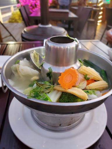 They only have outdoor seats. Which is fine however when the temp gets cold there are barely any outdoor heaters to keep you warm. Guests had to huddle around the only working heater. Service was so slow that we waited 20min for the waiter to show up first time, then 30 min to get food after ordering even though the restaurant was mostly empty. No server came to check on us to see if we wanted water or to let us know about our food status. We had to call them multiple times to ask the status and remind them about drinks. We ordered coconut water and it was all pink from inside. A coconut will turn pink when it is too old. After we asked for another one the Manager did not want to give a newer one. We asked for spicy sauce and they gave it in a bowl that looked like was going table to table. During covid times that is the fastest spreader. We ordered standard items like pad thai and pad see ew. Pad Thai tasted so fishy as if the noodles was in fish water all day. Neither item had any taste to them. Their Tom yum soup was boiled vegetables in lemon water. It tasted horrible and we had to return it.