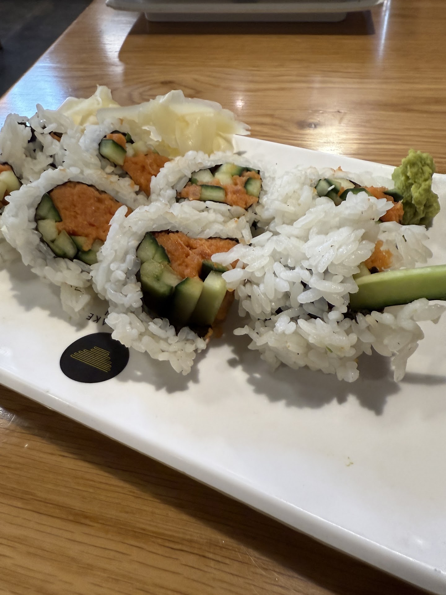When the sever approached us I ask if he could get the rest of the order out soon since the spicy rolls were for me only and my wife and kids were not eating those. He said “I get those out for you soon”… Nope it took another 10 min before getting the rest of the rolls (California rolls) to us.