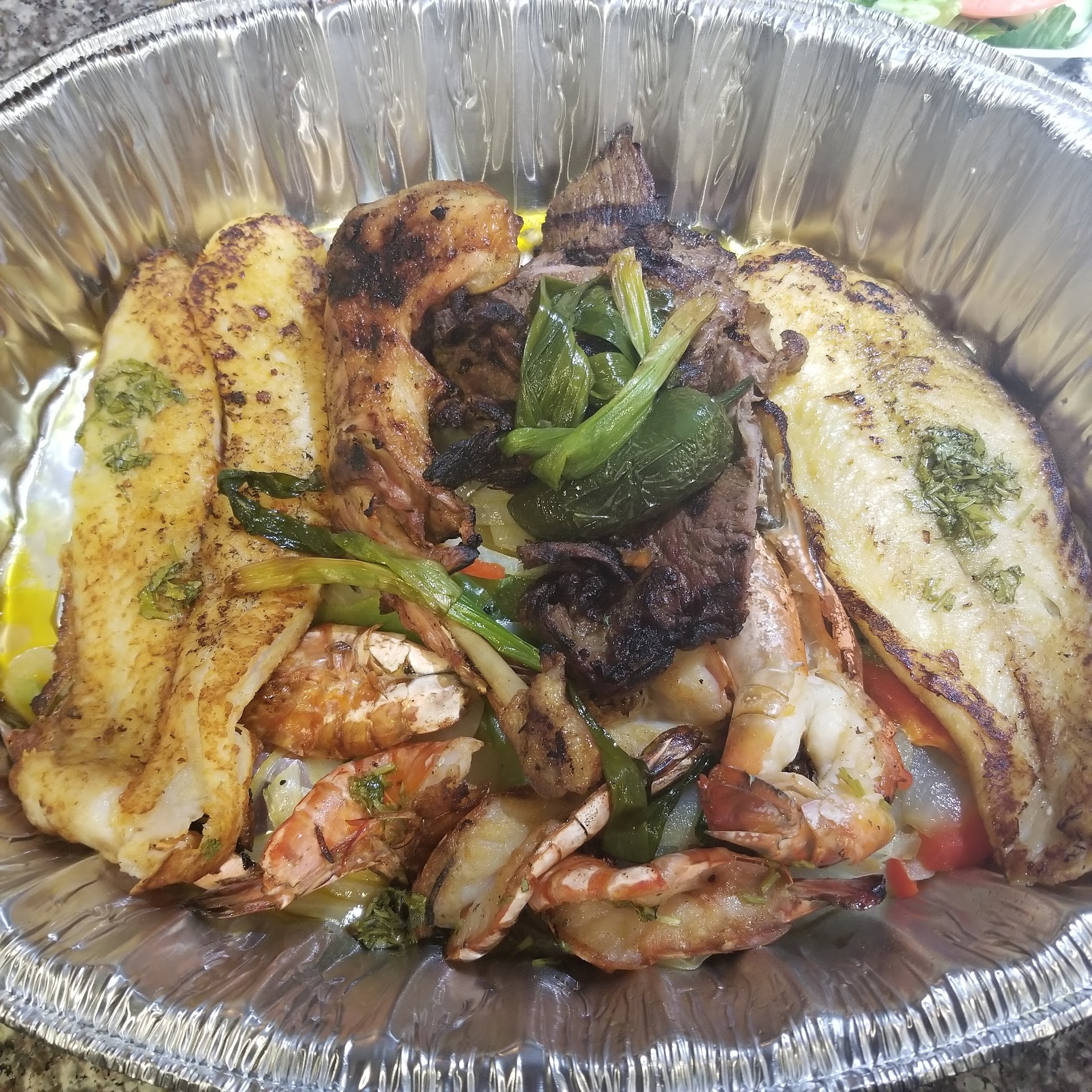 Great family dining! Especially good food. We had the full family meal, served on a large platter in the middle of the table...family style (which i love). We had chicken, stake, lobster tail and other sea foods...vegetables...breads...salads...deserts and I can't even remember it all. Every bite was delicious and perfectly prepared! That I do remember. Price, (when we divided up 3 good eaters, little ones...1 teen...and 4 adults) was a gift! And, there was plenty left over. The restaurant is charming with hand painted El Salvadoran "frescoes" on the walls. I can't wait to go back now I'm thinking about it. So, a couple of nights ago I did go back. My Daughter was in UCLA Hospital (tests) so friends came to rescue me. I hadn't eaten or slept well so I was in need of comfort and nourishment. "Where do you want to go? What do you feel like eating?" I could only think of... Sonsonate Grill and Chicken Soup. They served perrrrfect soup. Well prepared El Salvadorean crisp tortillas chips are soooo yummy you can't stop eating them (not greasy) came first...then the soup and enough sides to completly fill the three of us. Even though it's a large room, it has a cozy feel. I needed that. Weekdays aren't as crowded. I left feeling diffinantly comforted and nourished...and the iced cold Corona helped me sleep like a...