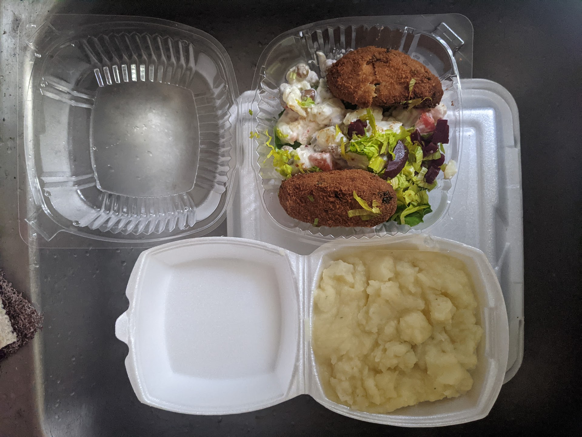 I have been living in this neighborhood for almost 15 years as and have been meaning to try this place because of the big "paella" sign out front. It's next to the highway and I'm always on my way to or from somewhere and have, sadly, never made it in until today. I say "sadly" because oh my goodness, what a delight so close to home! I ordered off of the Tuesday specials board and was not disappointed regarding flavor, freshness, price or portion size. I got grilled fish which came with 2 large sides (I opted for rice & mashed potatoes), chicken croquettes which came in a 3 piece atop a bed of very tasty potato salad and a chicken & cheese empanada (not pictured because I couldn't resist eating it immediately). I haven't even finished eating and I'm already thinking about what I'm going to try from their extensive menu next time! They also offer spanish grocery staples such as freshly made chimichurri, paella mix so you can make your own, cheeses, olives, smoked paprika, wines and pastries. My new...