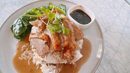 The roasted duck over rice was delicious. I love how if you add of the sauce drizzled rice, a piece of the duck lightly dipped in the sauce, then scope just a tiny bit of that sauce. It's like a comfortable and cozy mealtime right from your favorite home kitchen. There's ample of rice. I would dare say that if you didn't finish all the rice to eat it with some of the other proteins that you can order. Definitely took the leftover rice home. I like how the rice doesn't stick together and was cooked to the right temperature. The vegetable on the side was a nice addition to the flavor which makes it all the more feel like home.