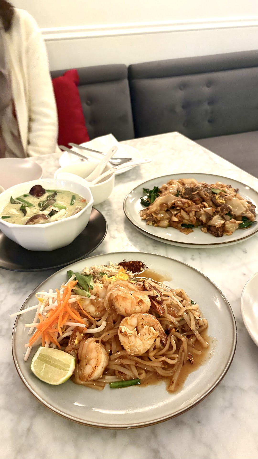 For our main dishes, I had the Khao Soi with Roasted Duck — rich, creamy curry broth with perfectly tender duck and egg noodles. Absolute comfort in a bowl. We also got the Pad Thai with Crispy Pork, which was flavorful and had the perfect amount of crunch from the pork.