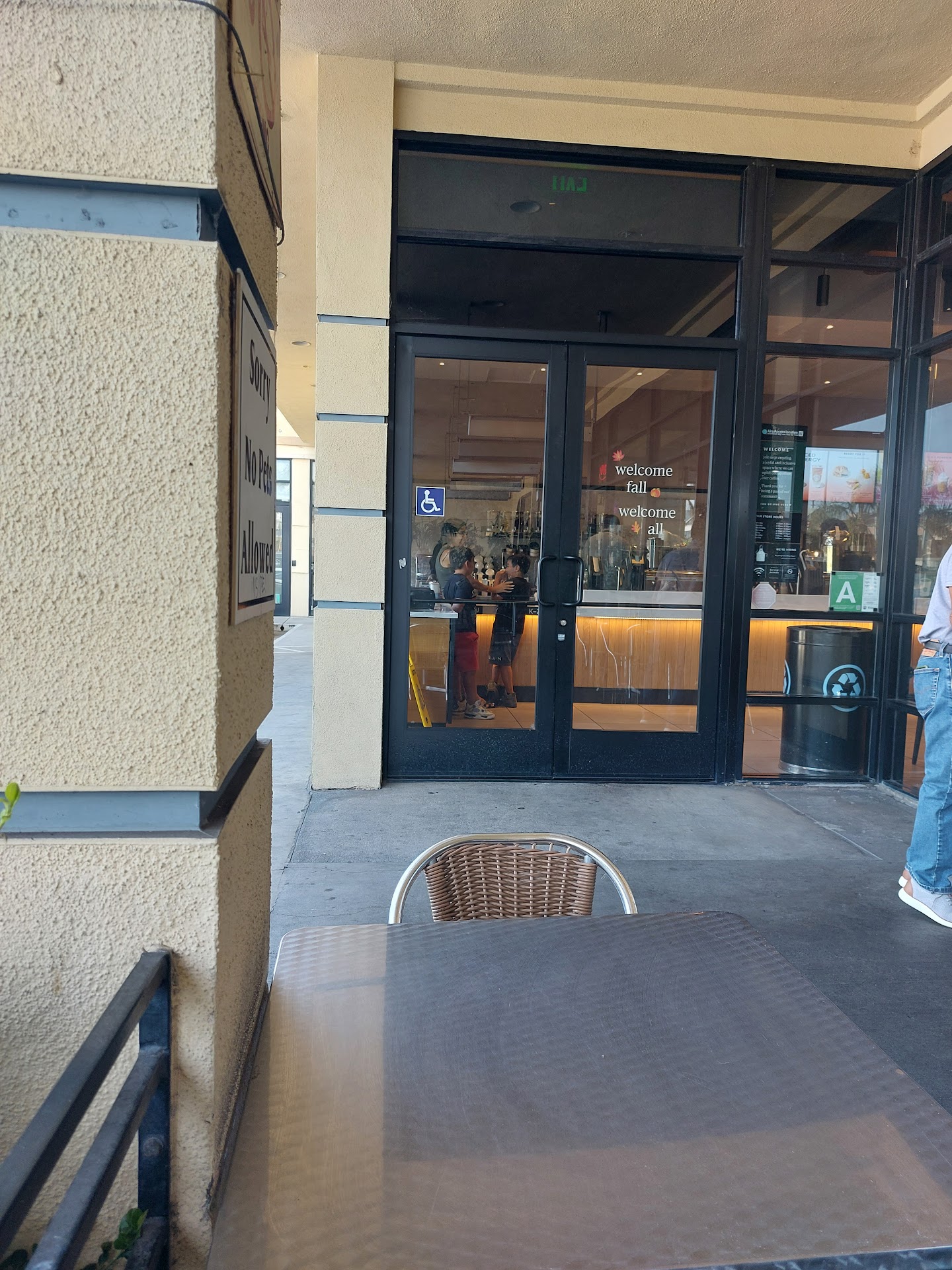 On 08/23, I ordered a cup of hot tea at the store. I clarified if I can get a free refill, and was told yes, as long as you are a member (have an app). I am, and I also paid with the app. I took a seat outside of the coffee shop (seating is pictured, it is right in front of Starbucks' entrance). I walked inside in 15 minutes to ask for refill, and was told that to get a refill I must stay in the store. I said that I was sitting in your outside sitting area, and the lady said that it isn't their seating area. How am I supposed to know that? It isn't fenced off, it is right next to the entrance, and there isn't any signage saying that it isn't their seating. Moreover, I was always visible from the store to make sure that I didn't leave or share my beverage with someone else. I work in food industry too, and we give a free cup of water to anyone in need (including homeless people), and here I wasn't allowed a refill as a...