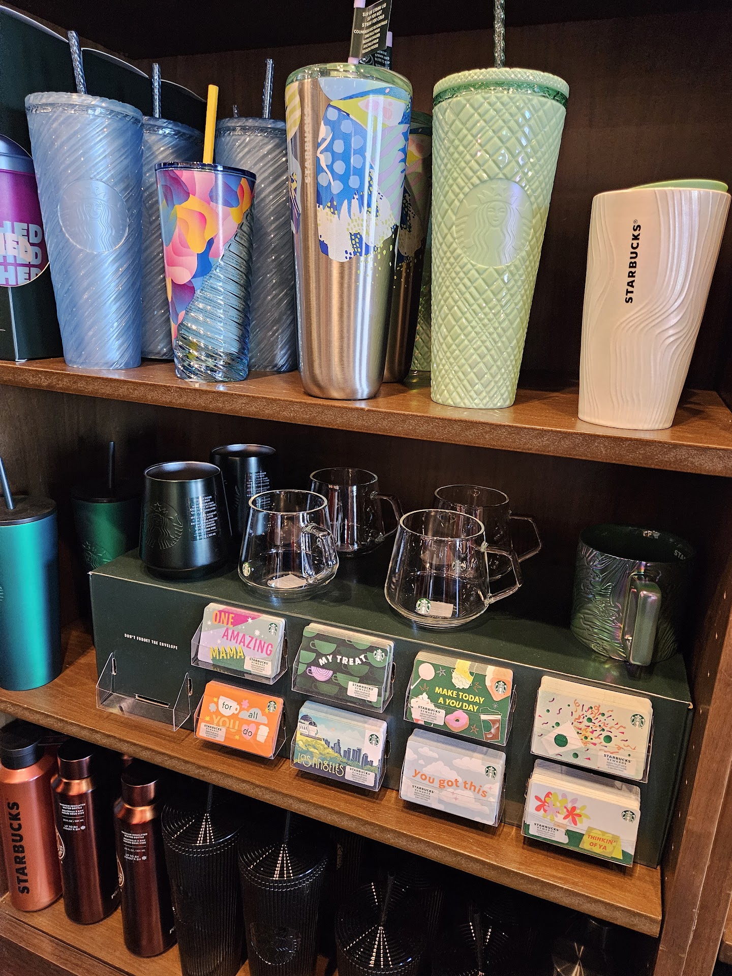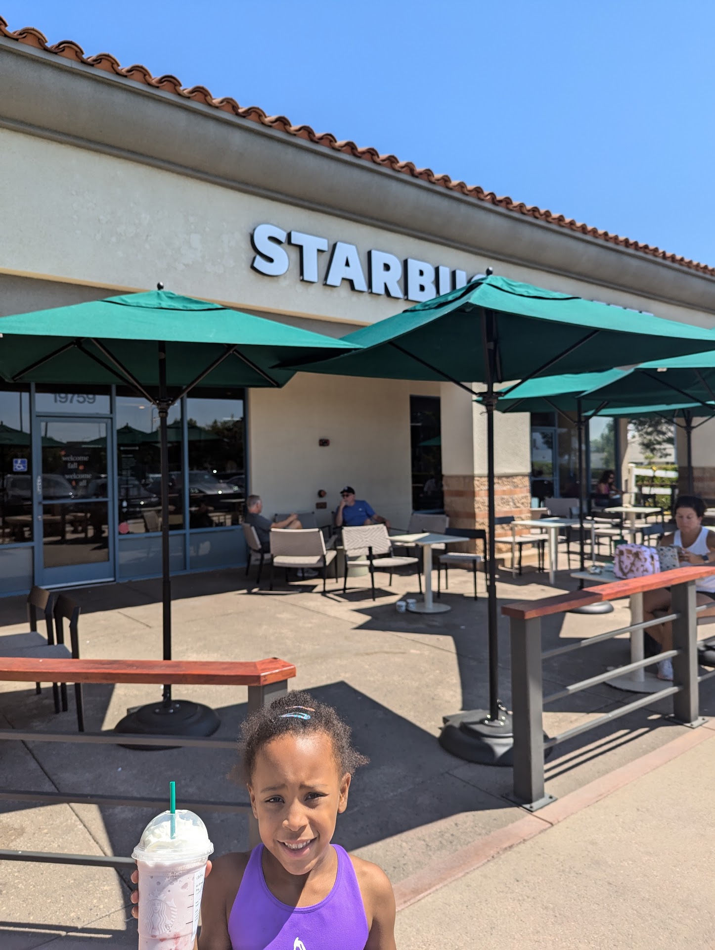 I stopped by this Starbucks this morning to get my niece her pink drink. You're better off parking a little further down to find a parking spot because the parking in front of Starbucks will likely be taken. When I was walking to the store after parking, I saw a Starbuck employee kicking out a homeless person from the outside patio because he was throwing stuff and when he was leaving he punch a Ferrari that was parked there. I would recommend that you put in your mobile order ahead of time because this Starbucks gets busy. I had to wait like 15 minutes with waiting in line and for the drink to be ready. I got my niece a grande pink drink with light ice. They have a lot of inside seating and also outdoor...