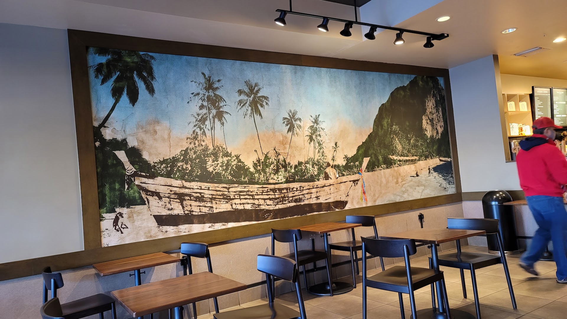 A nice location for a coffee shop. They usually have all their food items available. Other locations sell out early and never seem to order correctly. This location is extremely busy. They try hard to keep things clean but can't keep up with the heavy traffic. Many large groups neet here on a weekly basis. Lits of seating both inside as well as outside. The only drawback is the parking. Thus is a large strip type shopping center with a drugstore anchor on one end and an upscale grocery store anchor on the other end with a lot if smaller stores in between and banks and fast food structures scattered throughout the middle if a large parking lot. It is hard to navigate the lot and the grocery store has many large box delivery trucks that block views and Metro buses that block entrance/exit views. And because the lot has straight in and out as well as diaganal spots no one seems to know how to park. Handicapped spots are few and some were even removed to accommodate the customers who have someone shop for them and they just pick up their orders. But regular shoppers park there because they are not identified properly or customers don't understand why they should not park there. All in all the lot is too crowded and way...