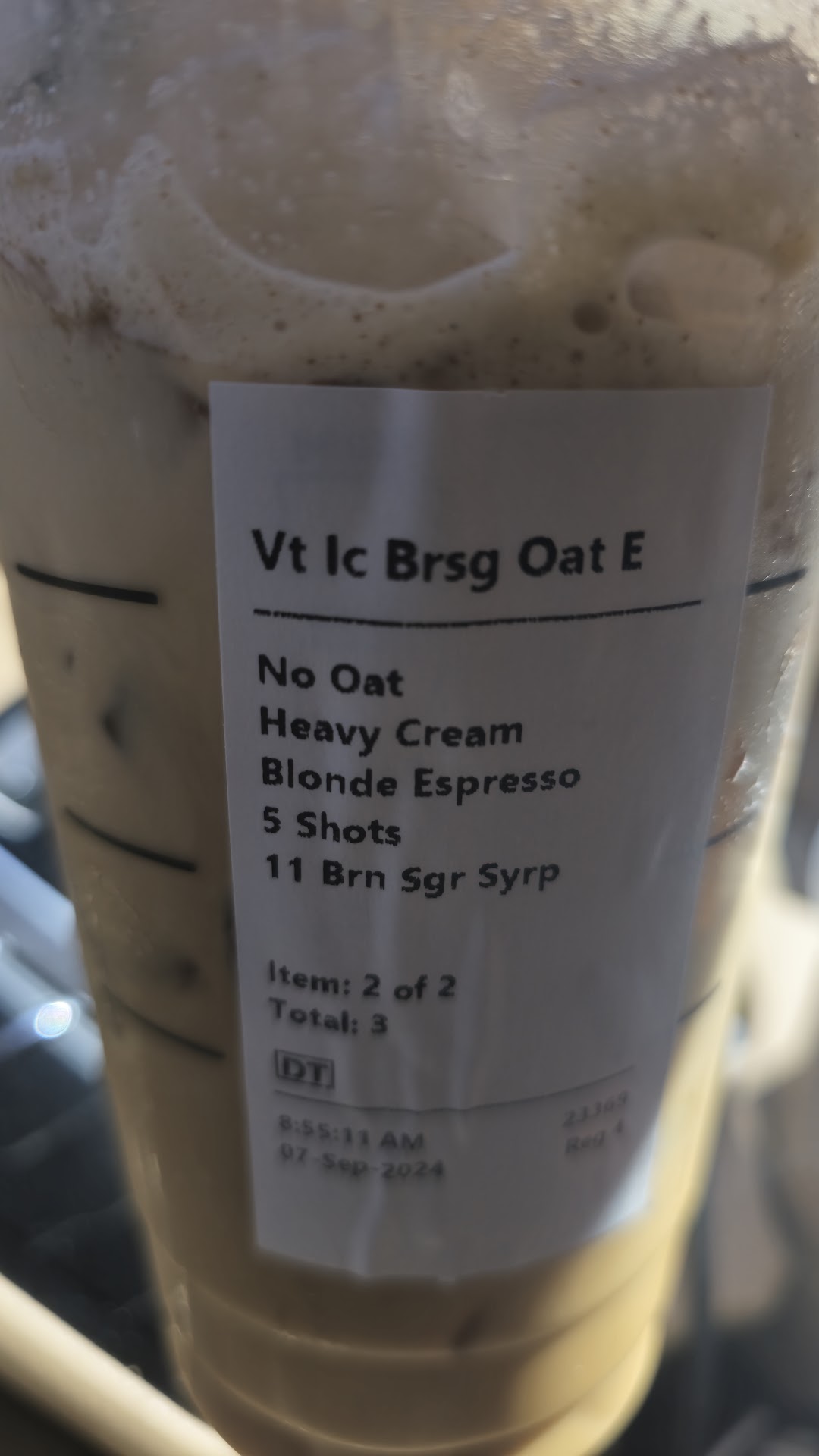 Read moreNot satisfied with my last two uber eats orders. One order, hot caramel macchiato didn't taste like a macchiato more like vanilla latte and a hint of caramel, and i had that drink here numerous times. Anyhoo, i decided to switch locations. Besides customer service kinda went down here in last few months, this location used to be one of my faves, not anymore. Decided to give this location another chance, I went ahead and placed another order form here and again so not satisfied. My drink was missing like about 1 1/2 of my pumkin spice latte. It happens most of the time when you ask with whip or their foam, they skimp out on coffee. I pay for coffee not foam/whip. Requested a refund and it was not given to me, went something like- "unfortunately we will not be able to provide you with a refund for your item this time" huh, why NOT? I pay $6.25 for a full size drink and got less, got skimped. As a regular paying customer, I deserve a lot more than "maybe today you and your business is...