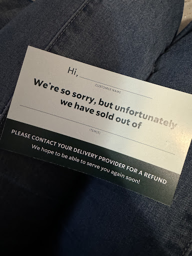 Do not order delivery from here. I waited to receive a note saying they didn’t have the sandwich…I’m sure the order could have been canceled from the store, I tipped the dasher & everything all for a note. &&& b4 we blame the dasher, the bag was sealed and had a note from Starbucks, idk if it’s this location but I won’t be door dashing from here again, and from Starbucks for a little while.